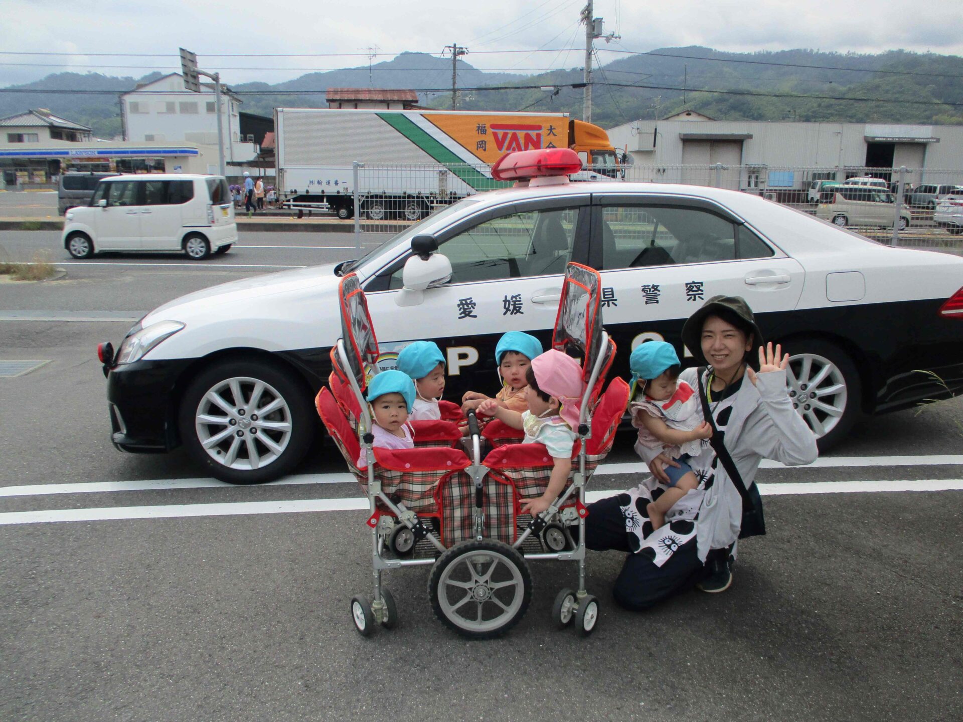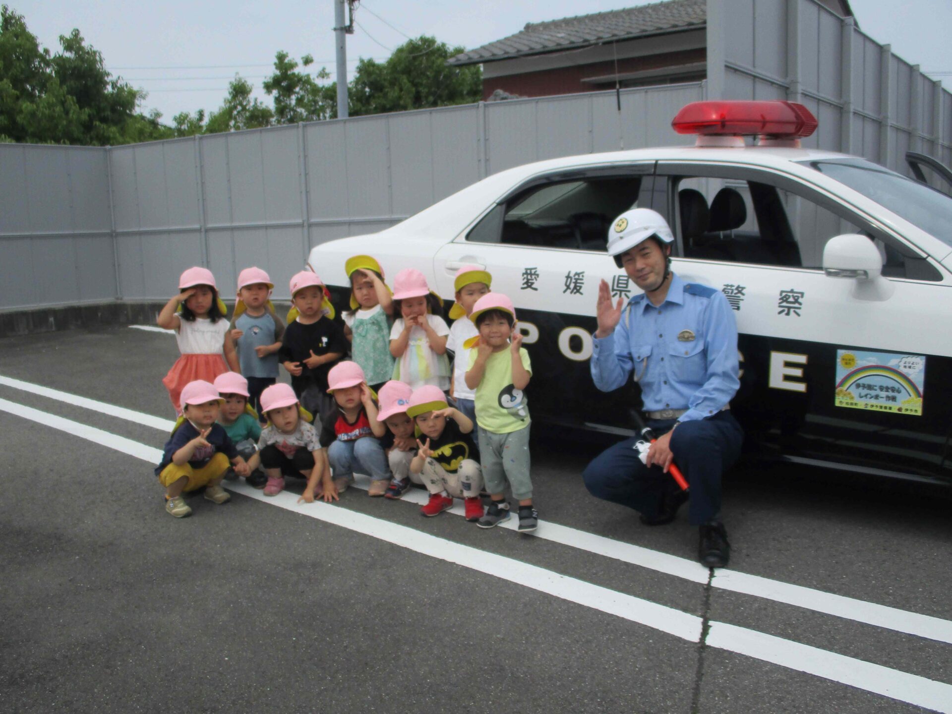 なかなか、おまわりさんやパトカーを間近でみる機会がない中、毎年の交通安全教室に協力していただける伊予警察署の方々には感謝です!地域の人とのかかわり、今後も積極的に取り組んでいきたいと思います。