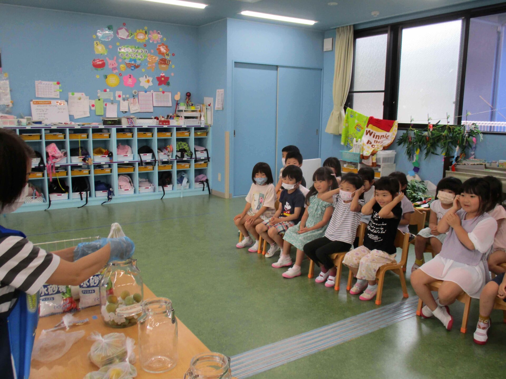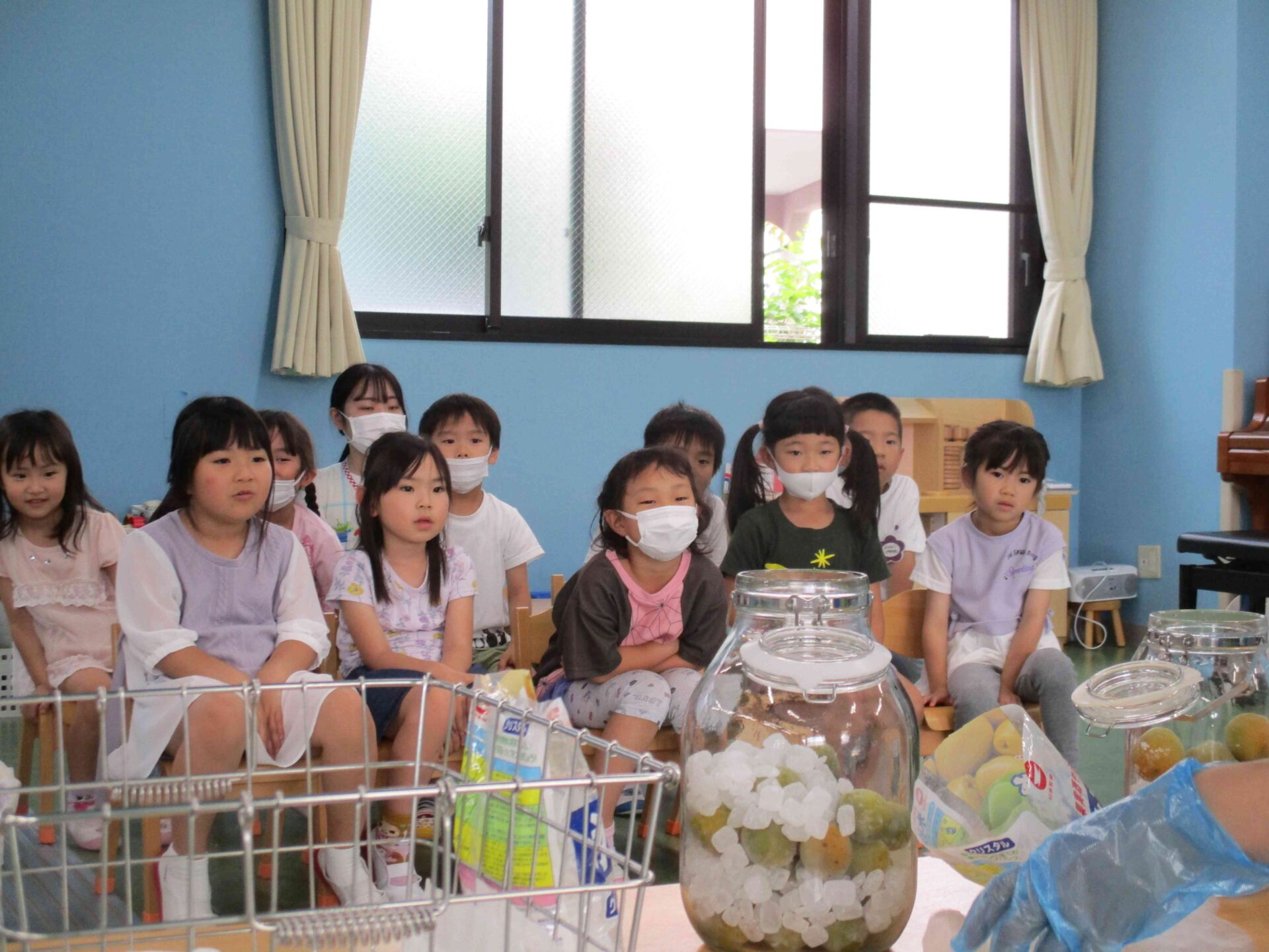 こども園の年長児が、『梅シロップ』作りに挑戦です!!