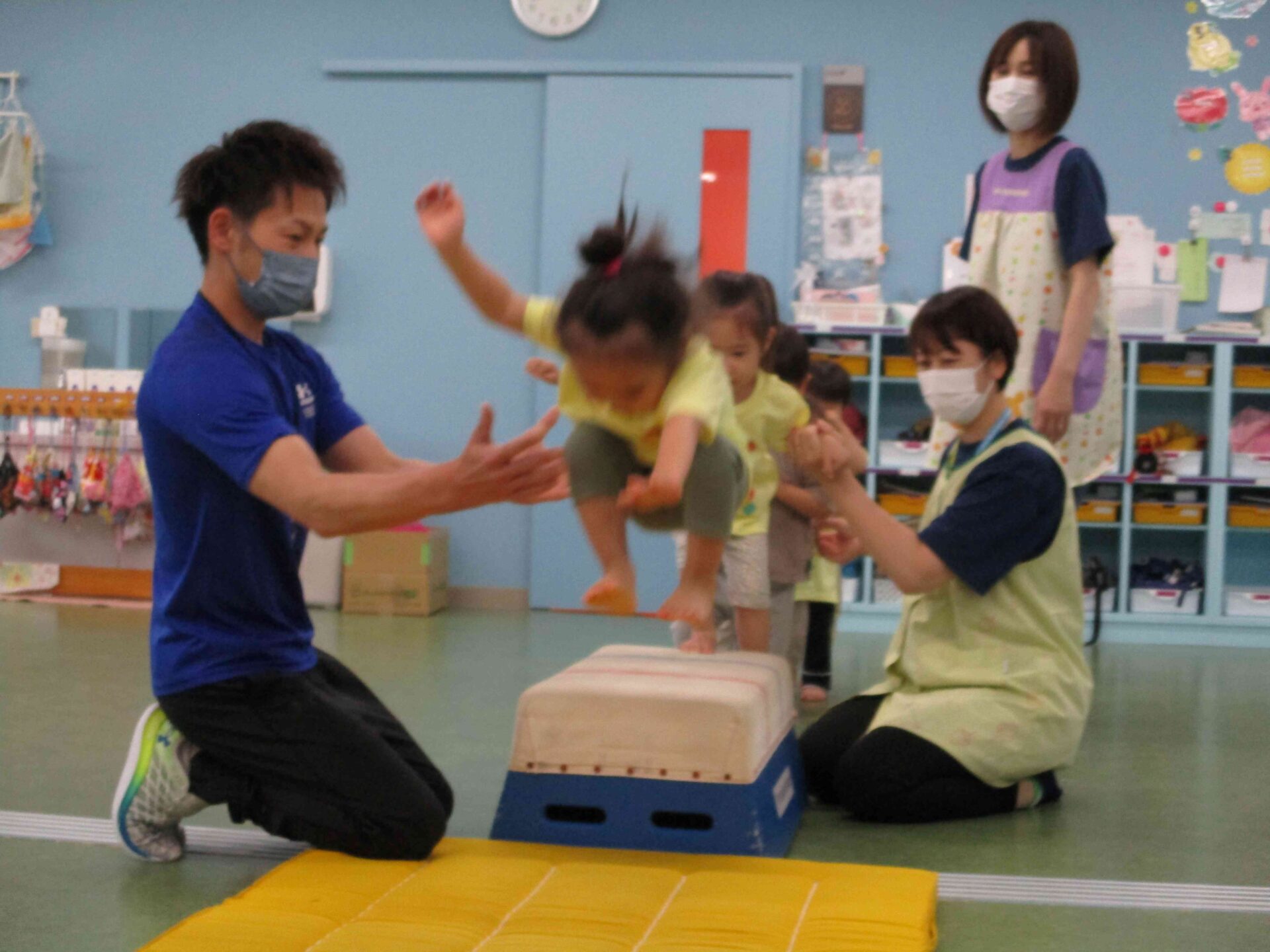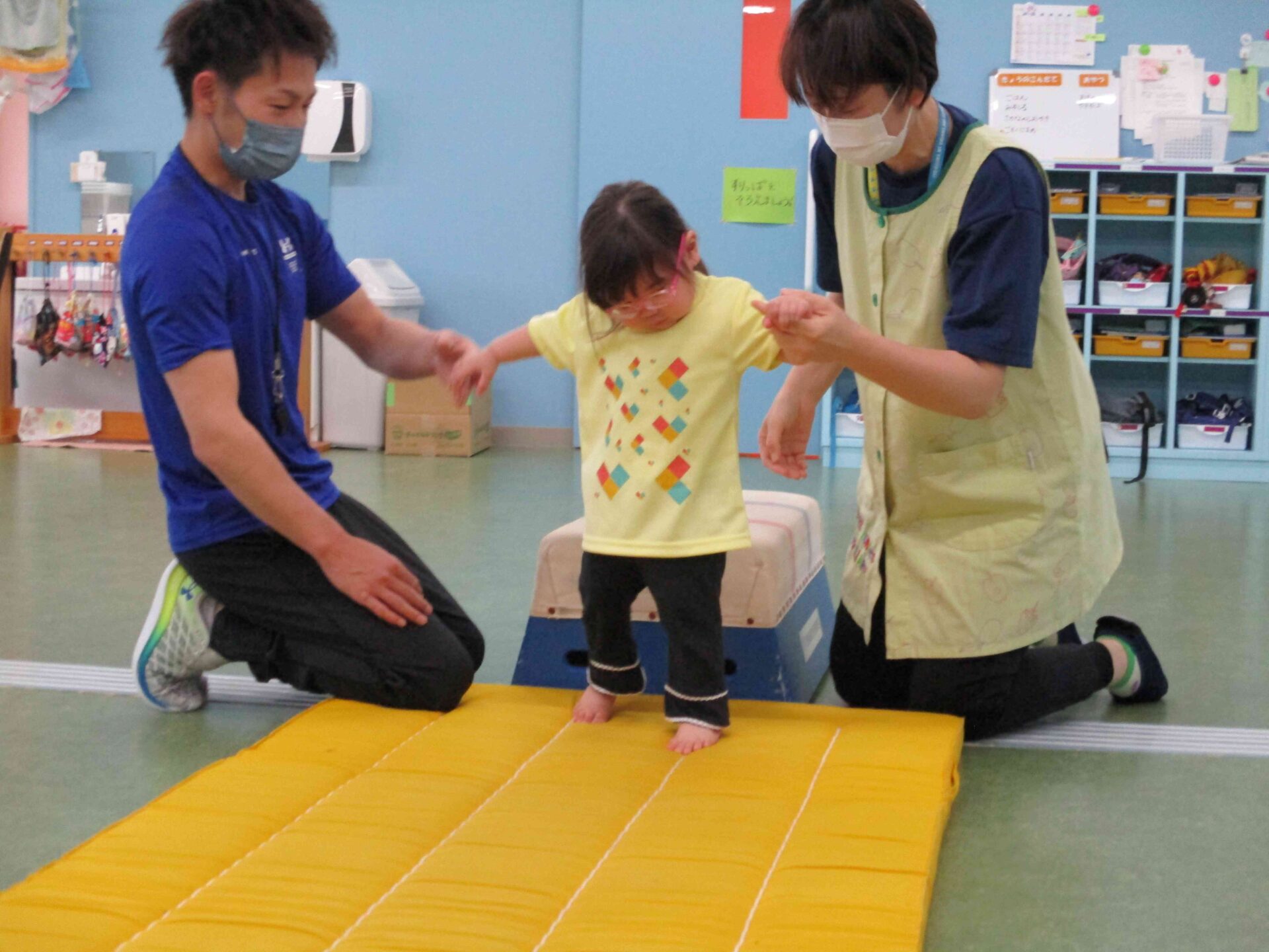 だいちチームは、10分間という短い時間ですが、『跳び箱にのぼって、マットにおりる』という全身運動に挑戦することができました。