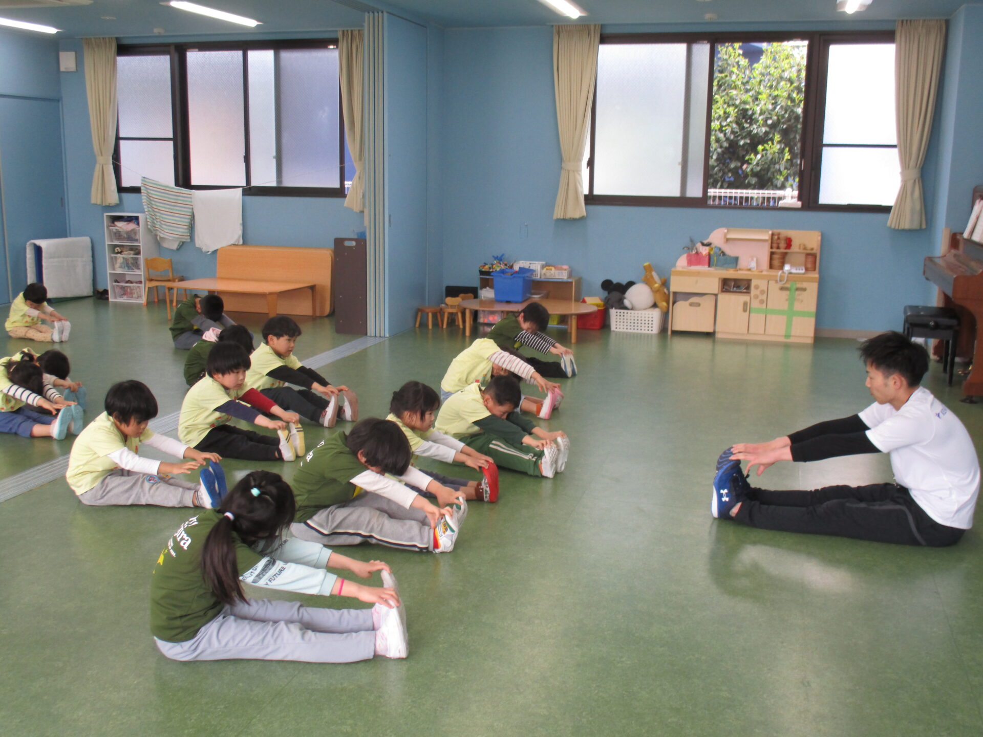けんしょう先生と「はじめまして」のお友達も、喜んで柔軟体操ができていました。