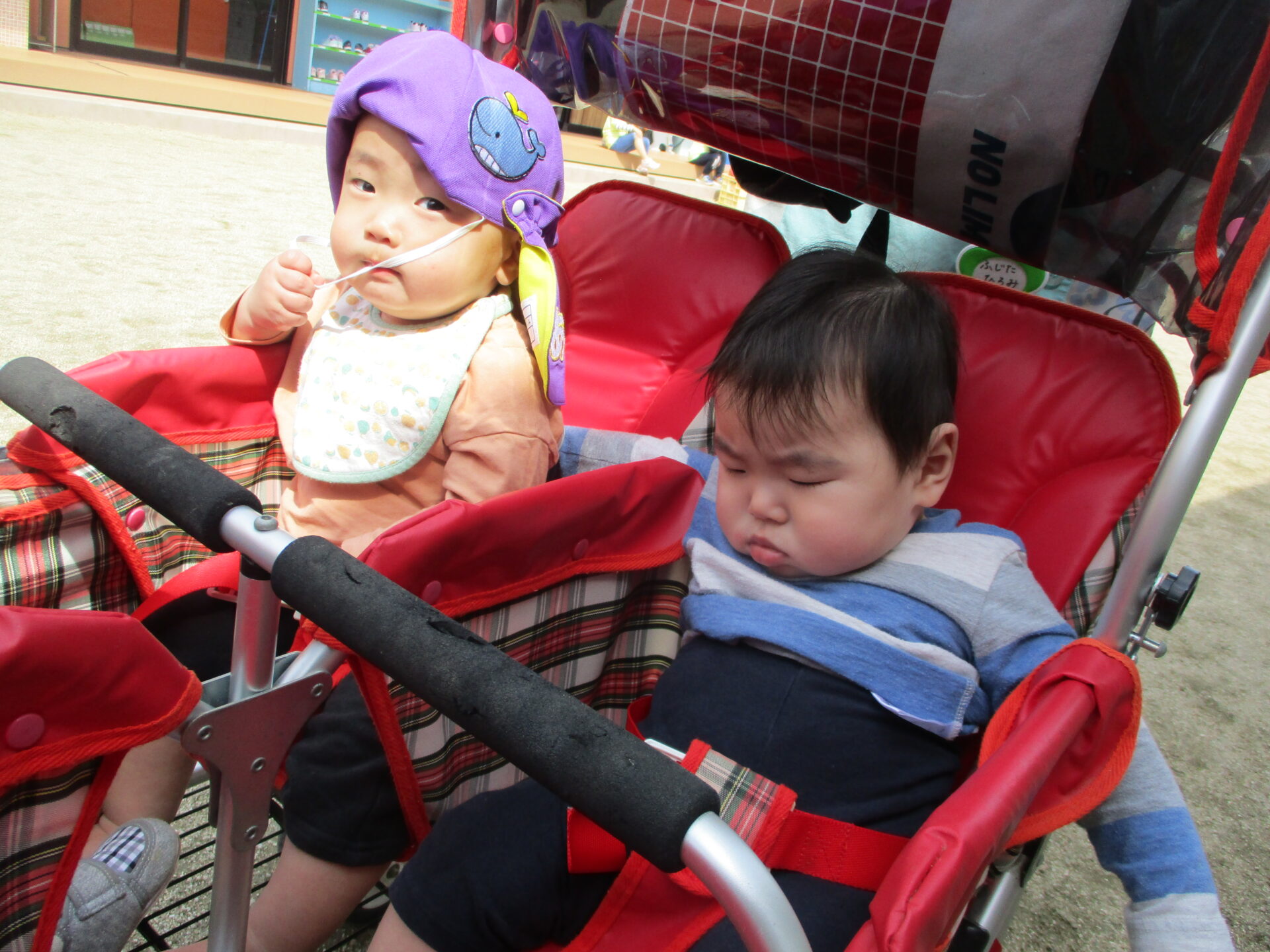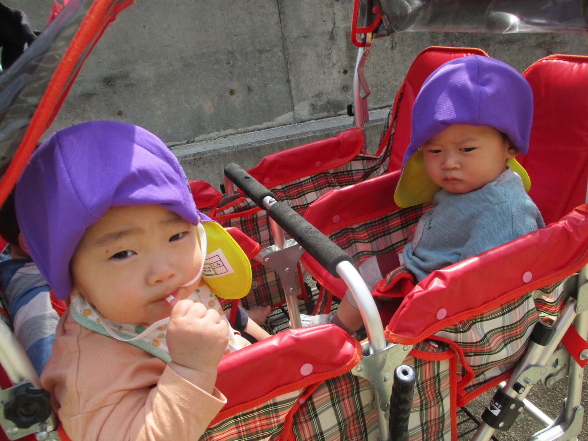 天気のいい日は、バギーに乗って、園庭をお散歩したり♪