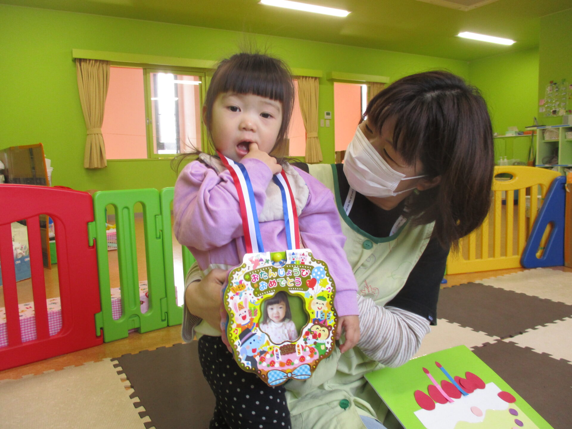 3人のお友達が仲間入りした、1歳児だいちチームでも、誕生会が行われていました。