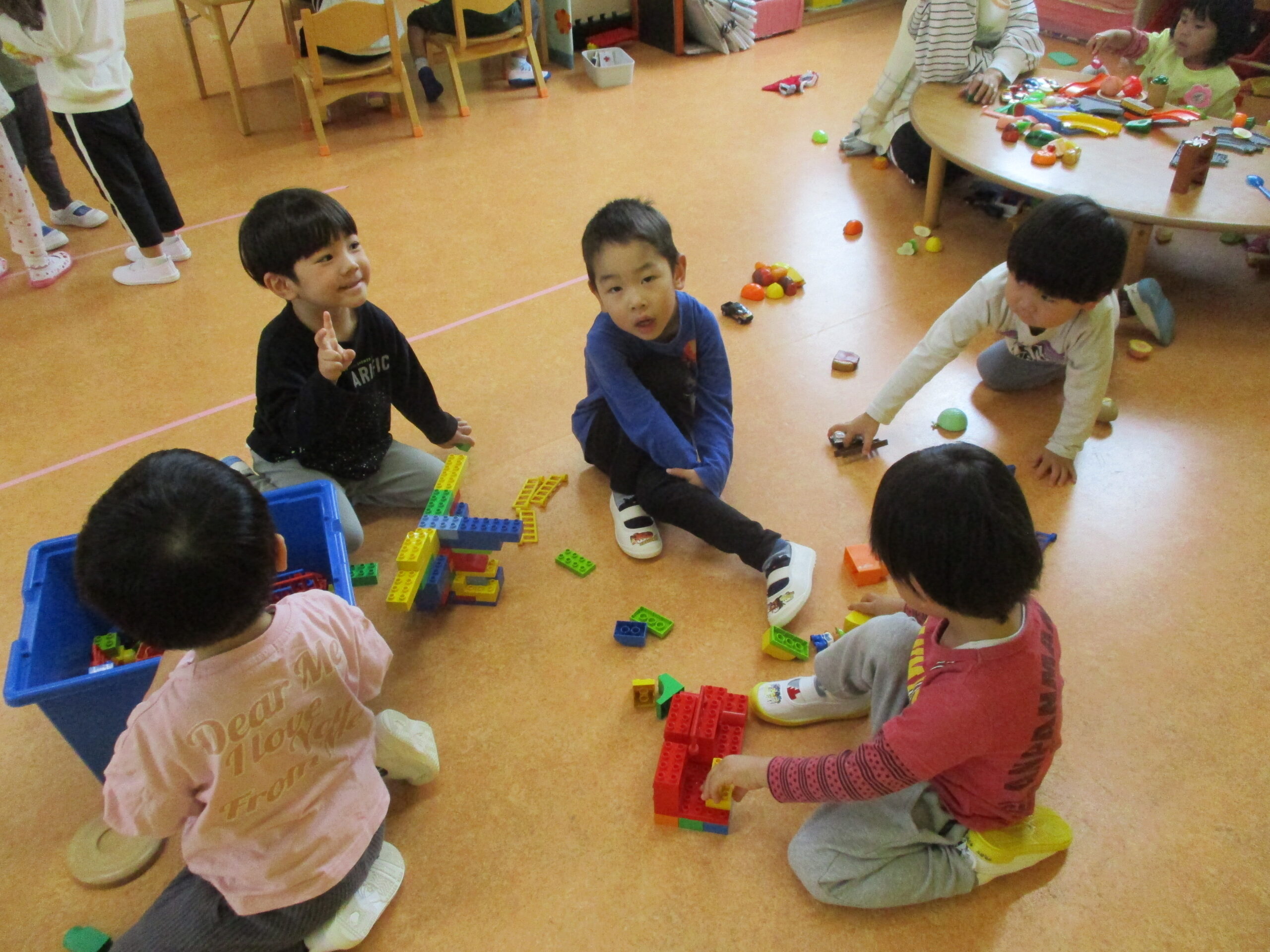 ままごとやブロック、ごっこ遊びなどお友達と一緒に好きな遊びを楽しんでいます。