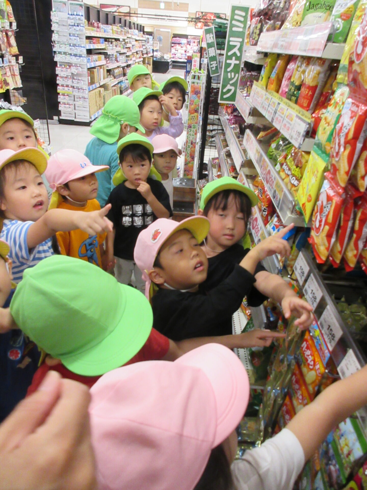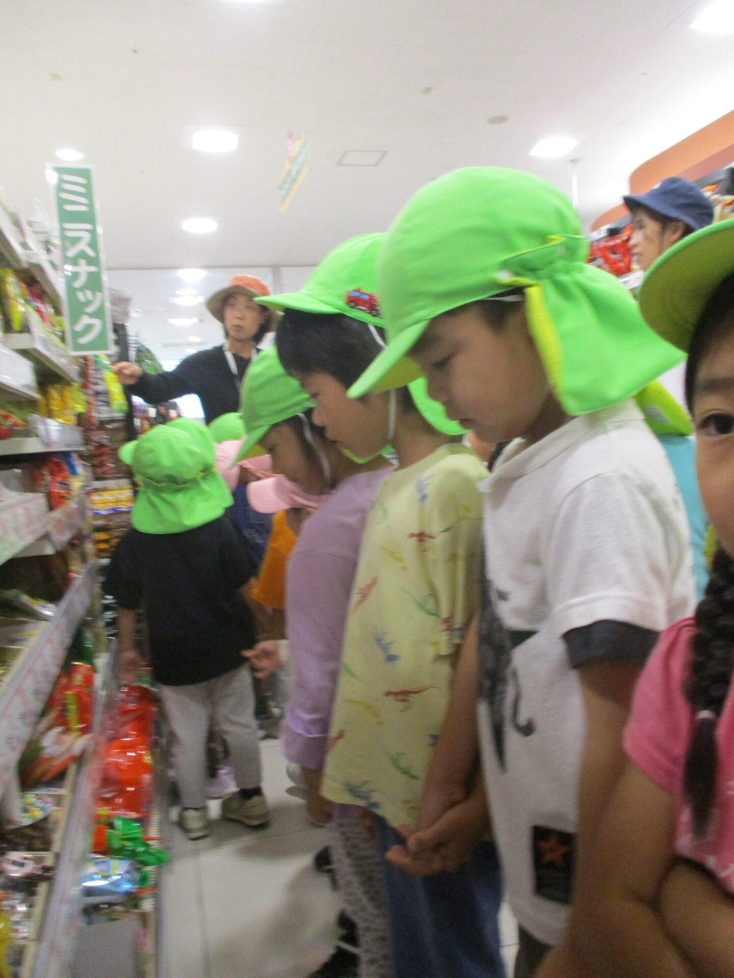 園から近い、『マルナカ』さんの了承を得て、4グループに分かれてのお買い物です。