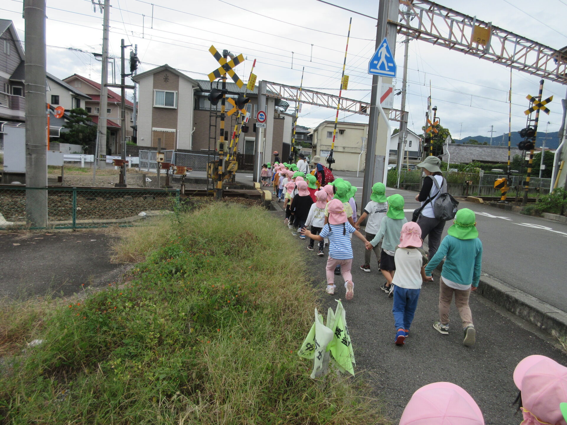 みんなで踏切を渡ることもできて、大興奮!!お天気が怪しくなってきたけど、最後まで安全にしっかりと歩くことができました。