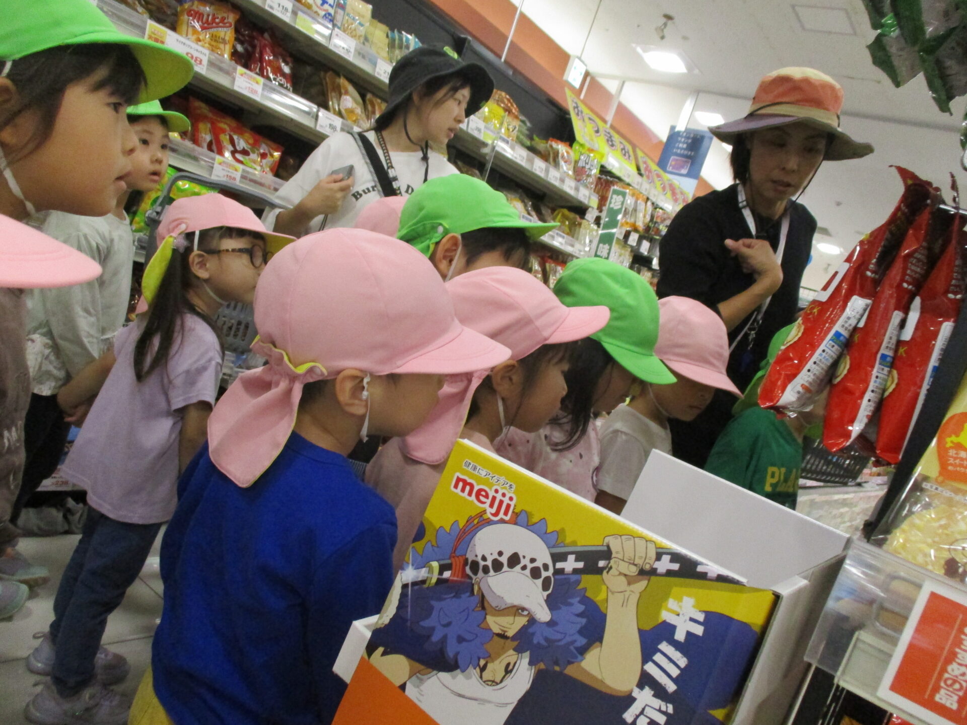 あーでもない、こーでもないと保育者と相談しながら、『みんなが食べれるお菓子』『一人100円まで』というルールを守って、お買い物終了です。