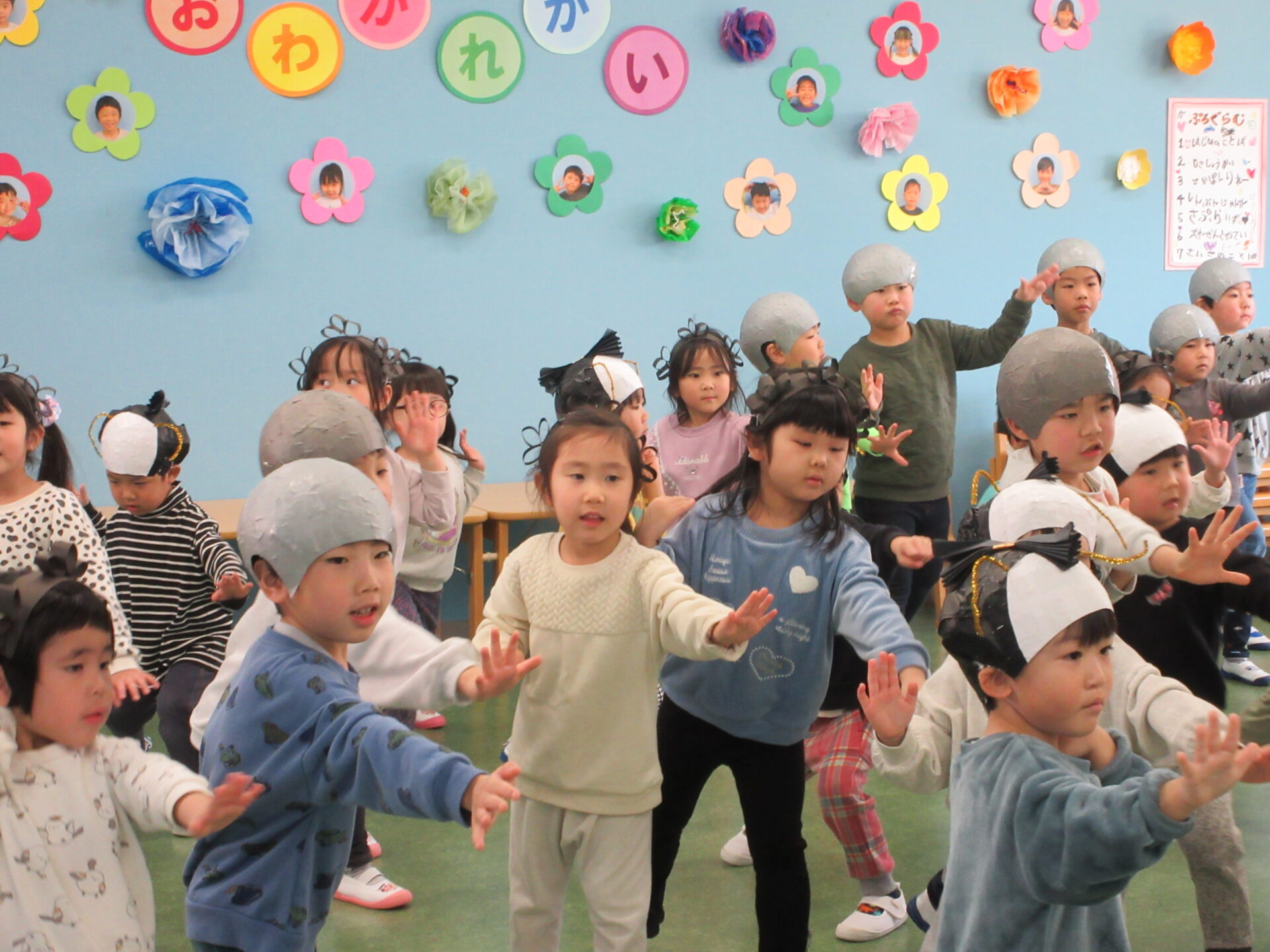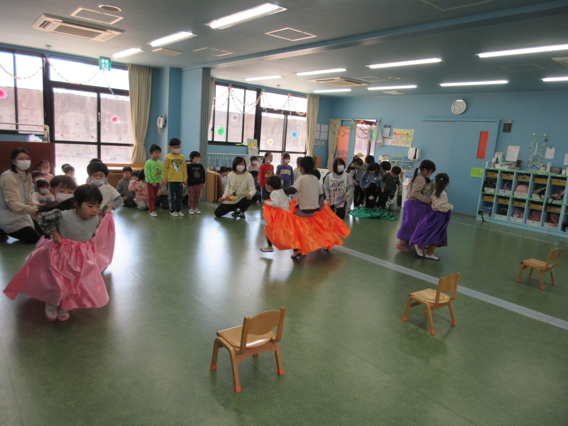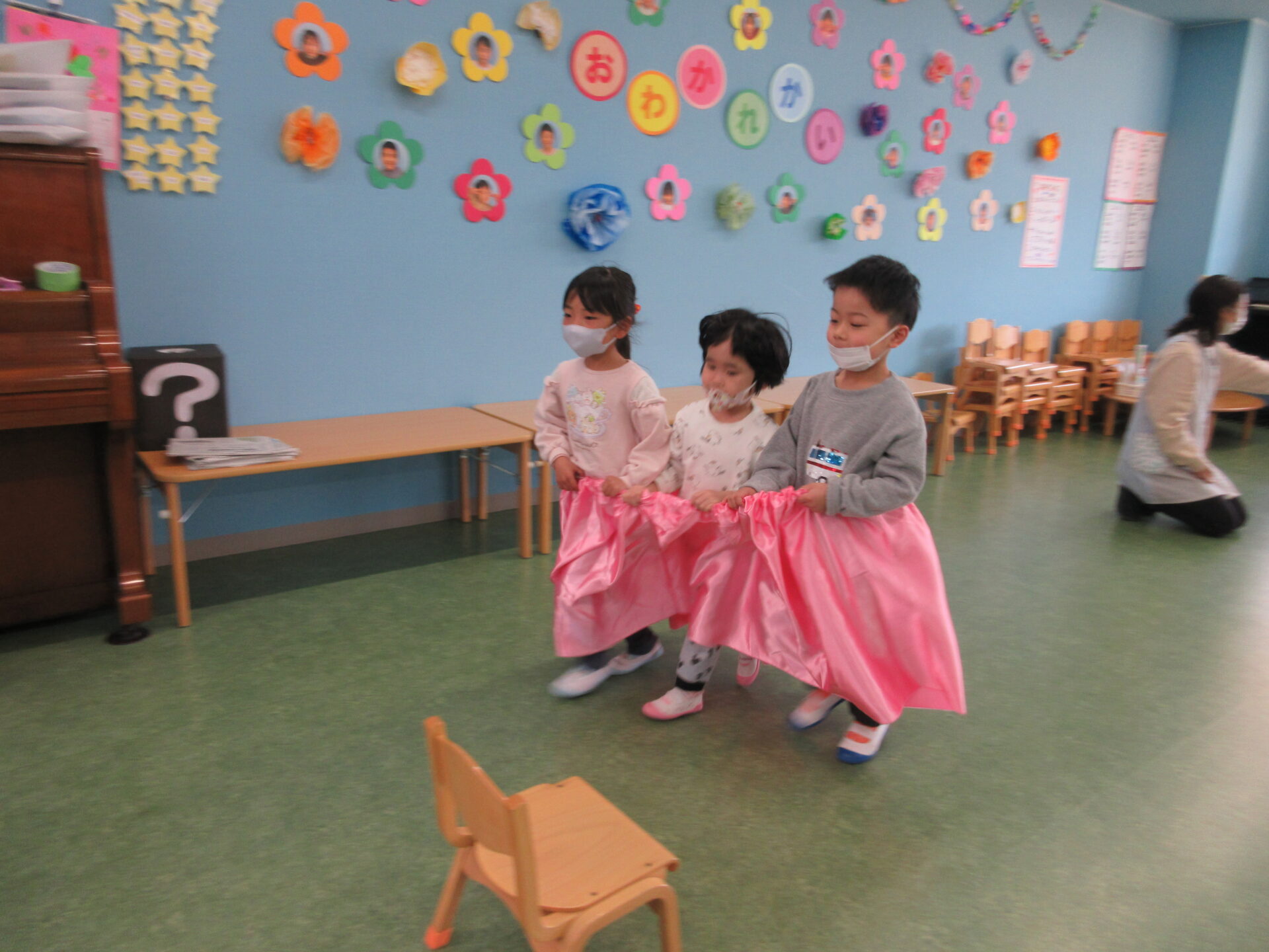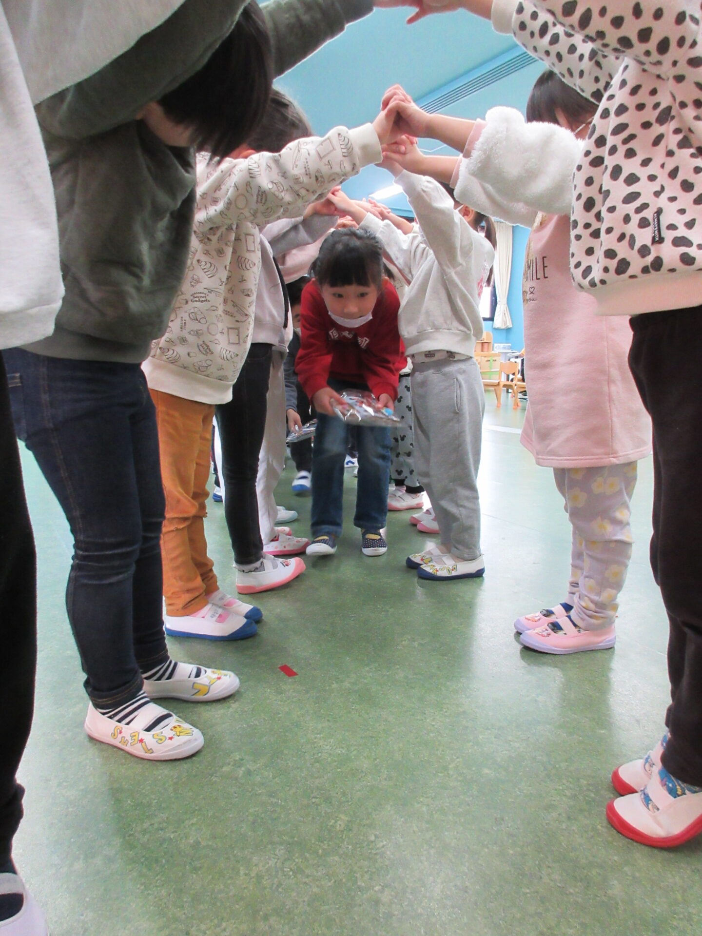 今までたくさんお世話になったくじらチームさんに楽しんでもらおうと、3.4歳児にじ.そらチームが企画、進行をしてくれて始まります!