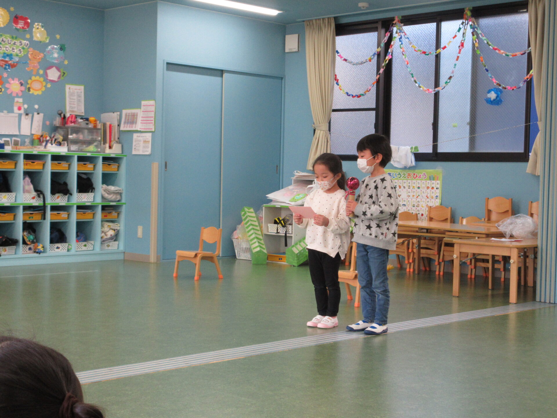 3月15日に卒園するくじらチームさんと、お別れ会を行いました。