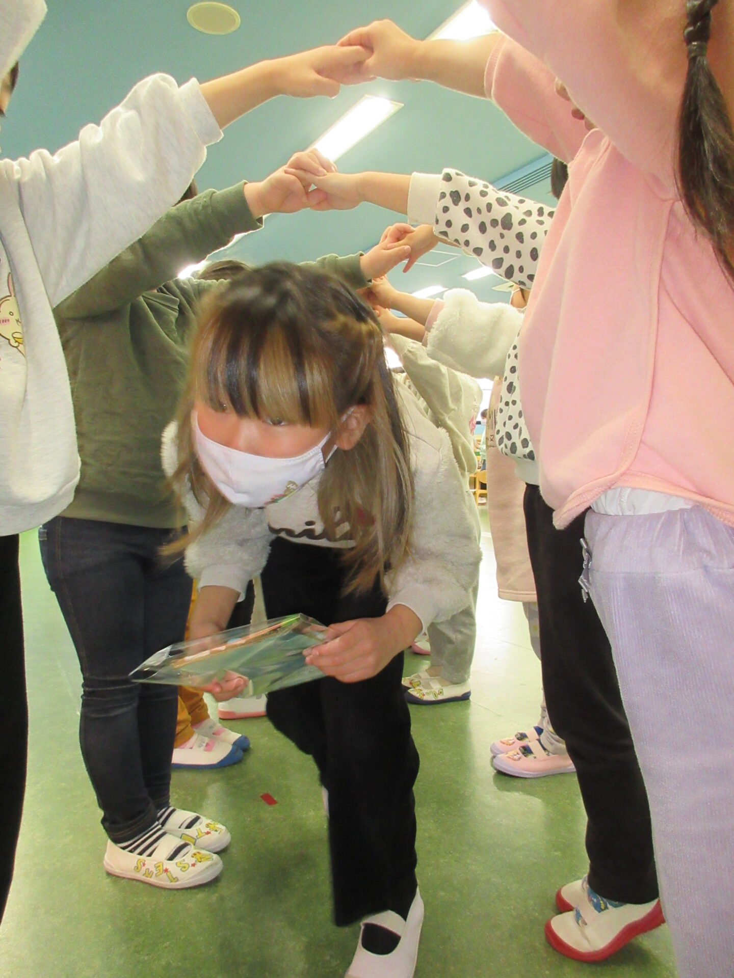 まず、運動会の縦割り班ゲーム!次に新聞じゃんけんなど、くじらチームさんと触れ合うゲームをしました♪