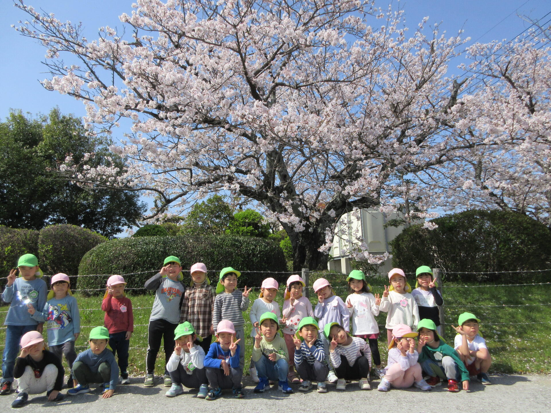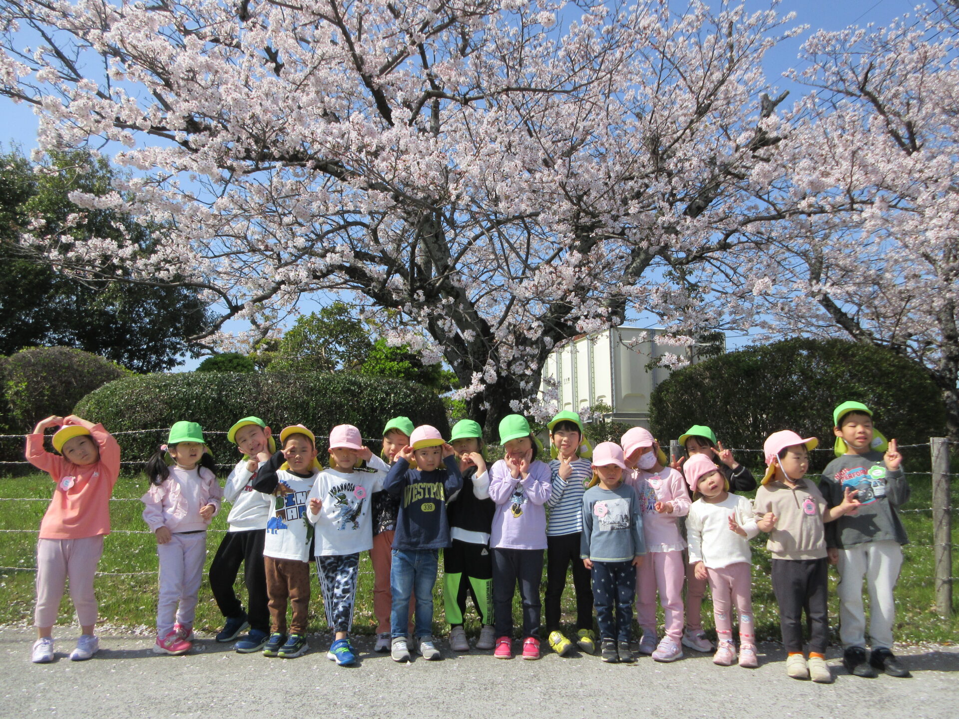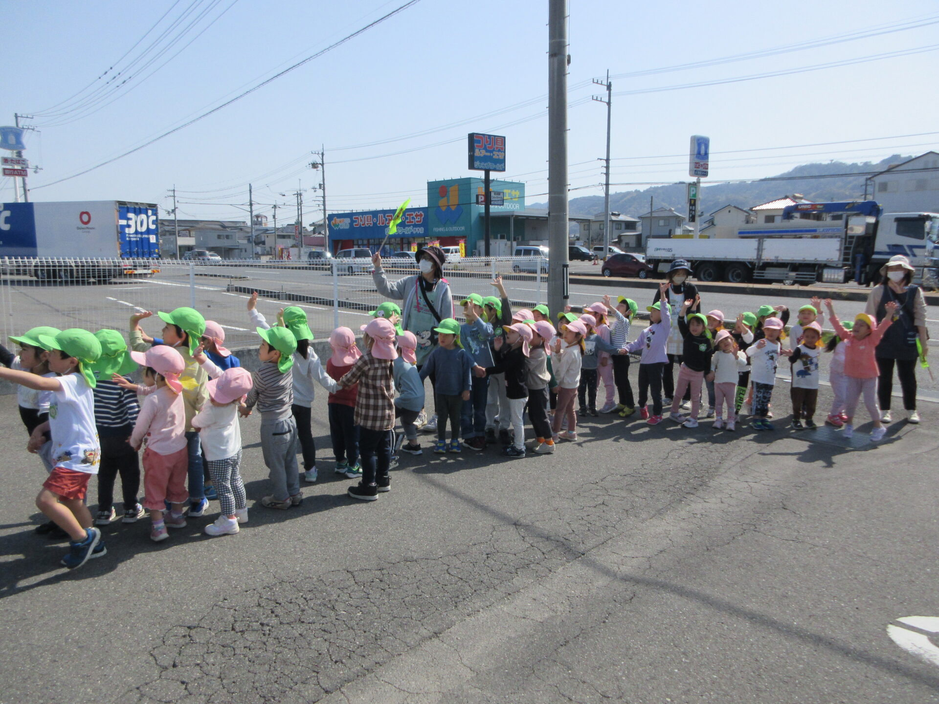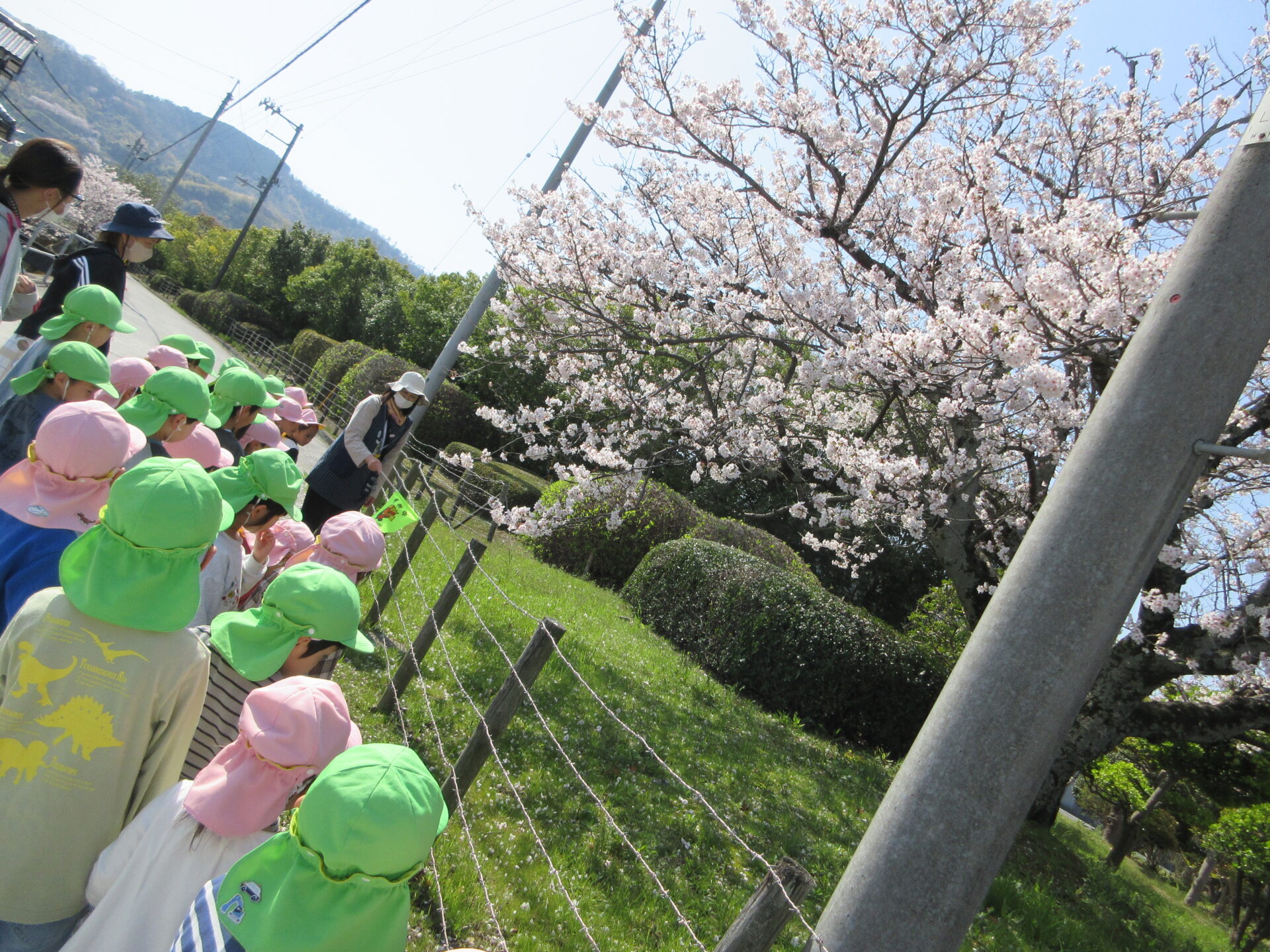 4月7日に、4歳児そらチームと5歳児くじらチームが、手をつないでお散歩へ行きました。
