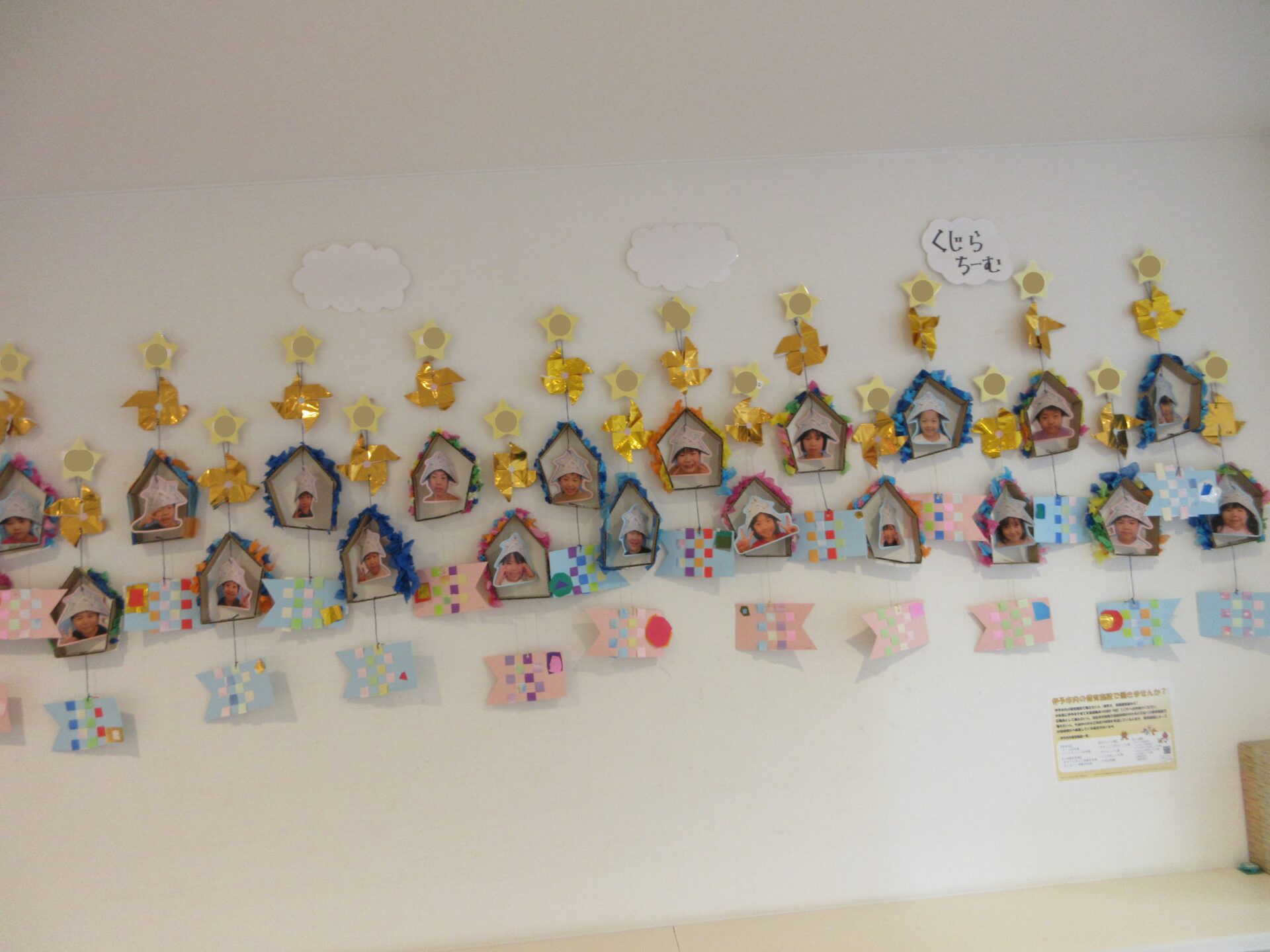 今月の玄関壁面を担当してくれたのは、くじらチーム(5歳児)です😊