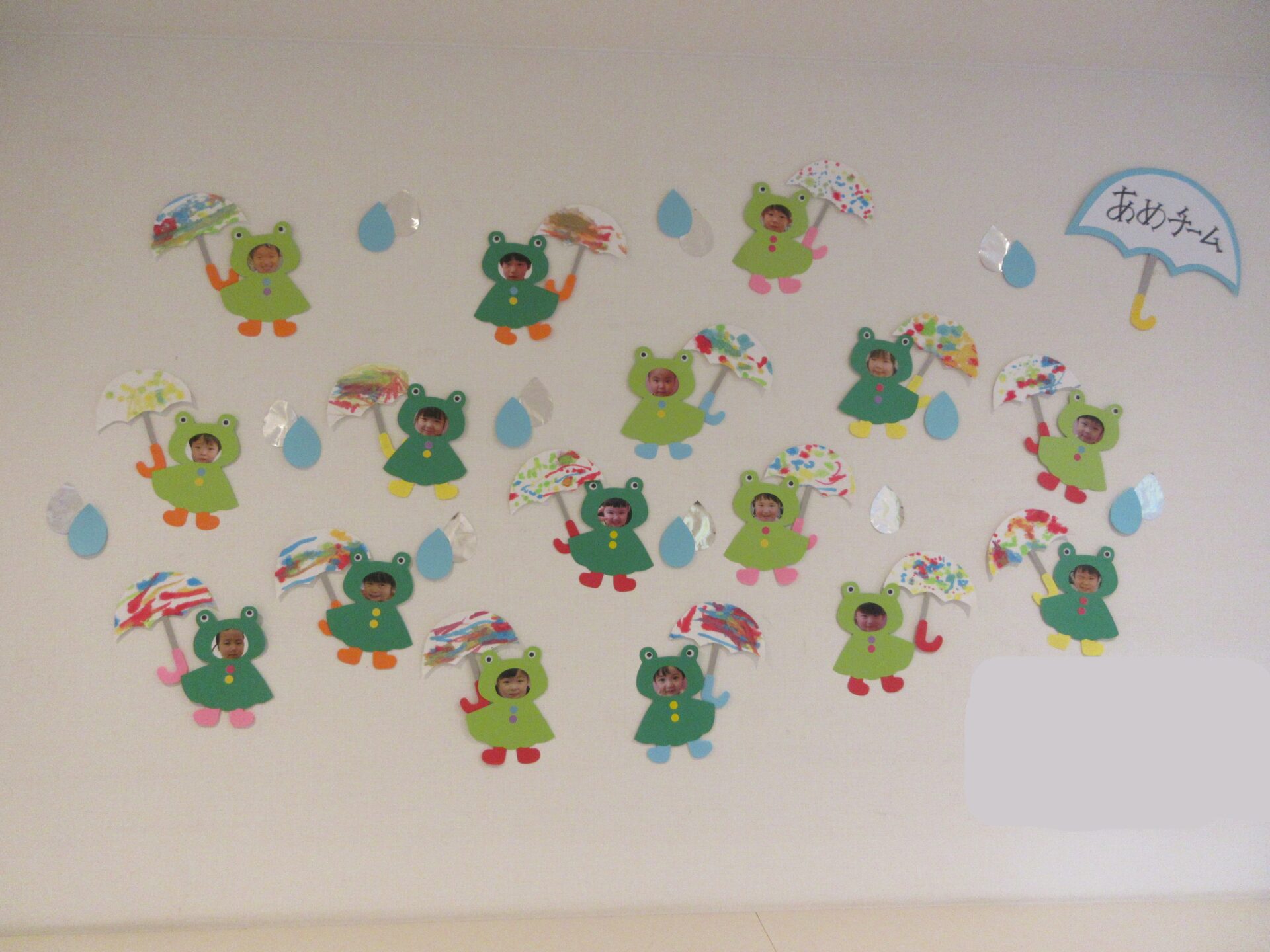 今月の玄関壁面を担当してくれたのは、あめチーム(2歳児)です😊