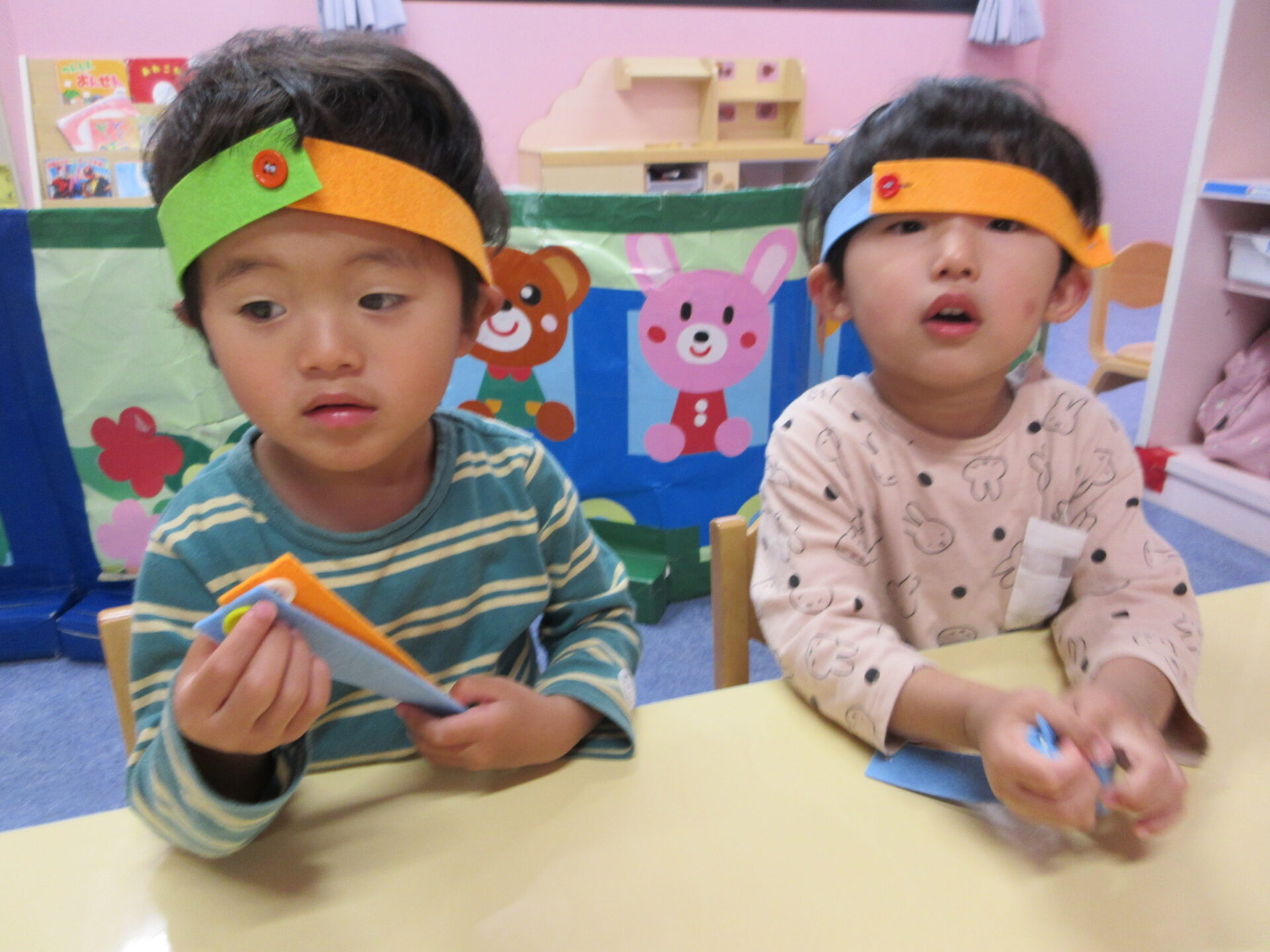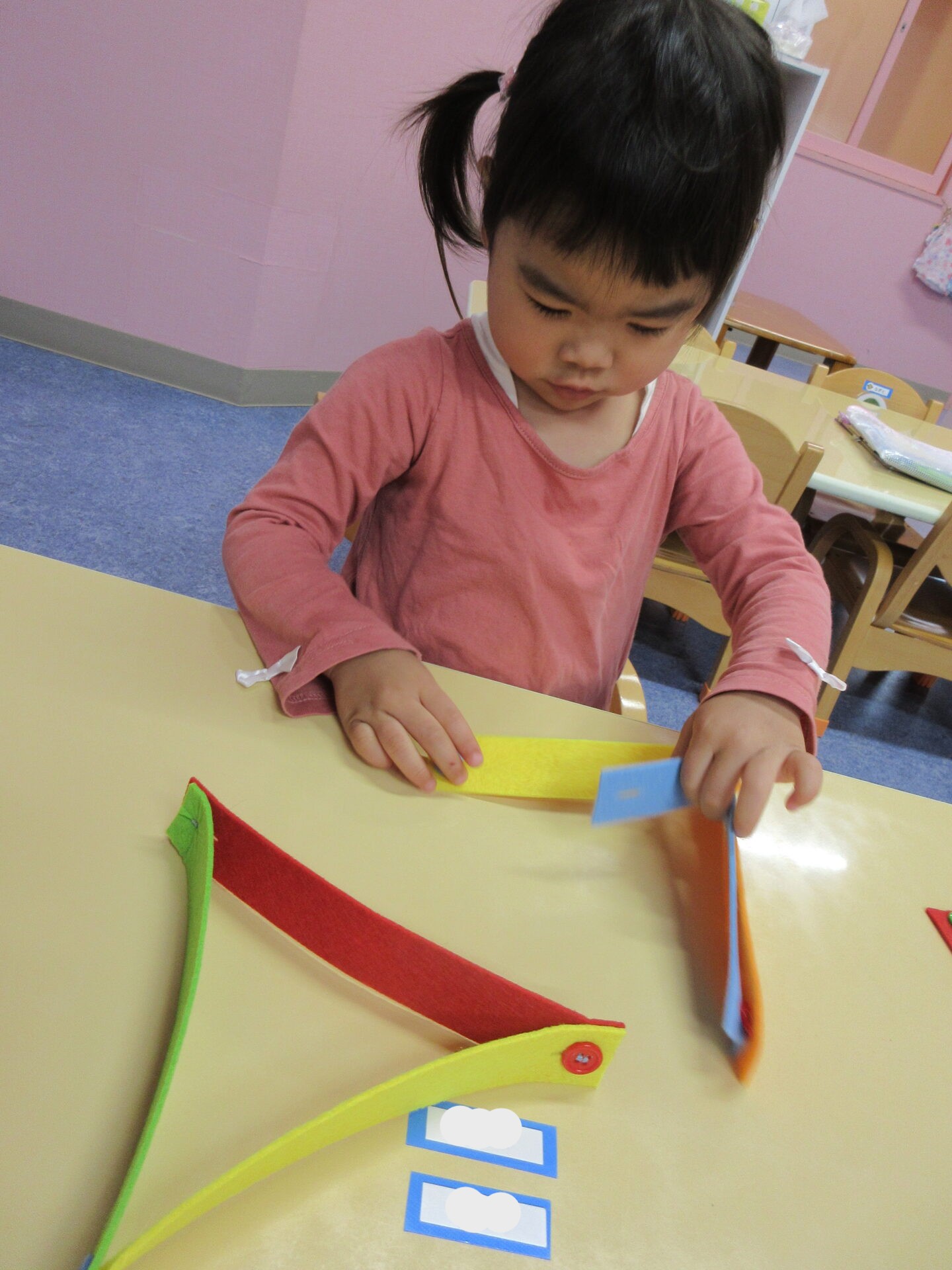 ボタンの掛け遊びをしていた、あめチーム(2歳児)!