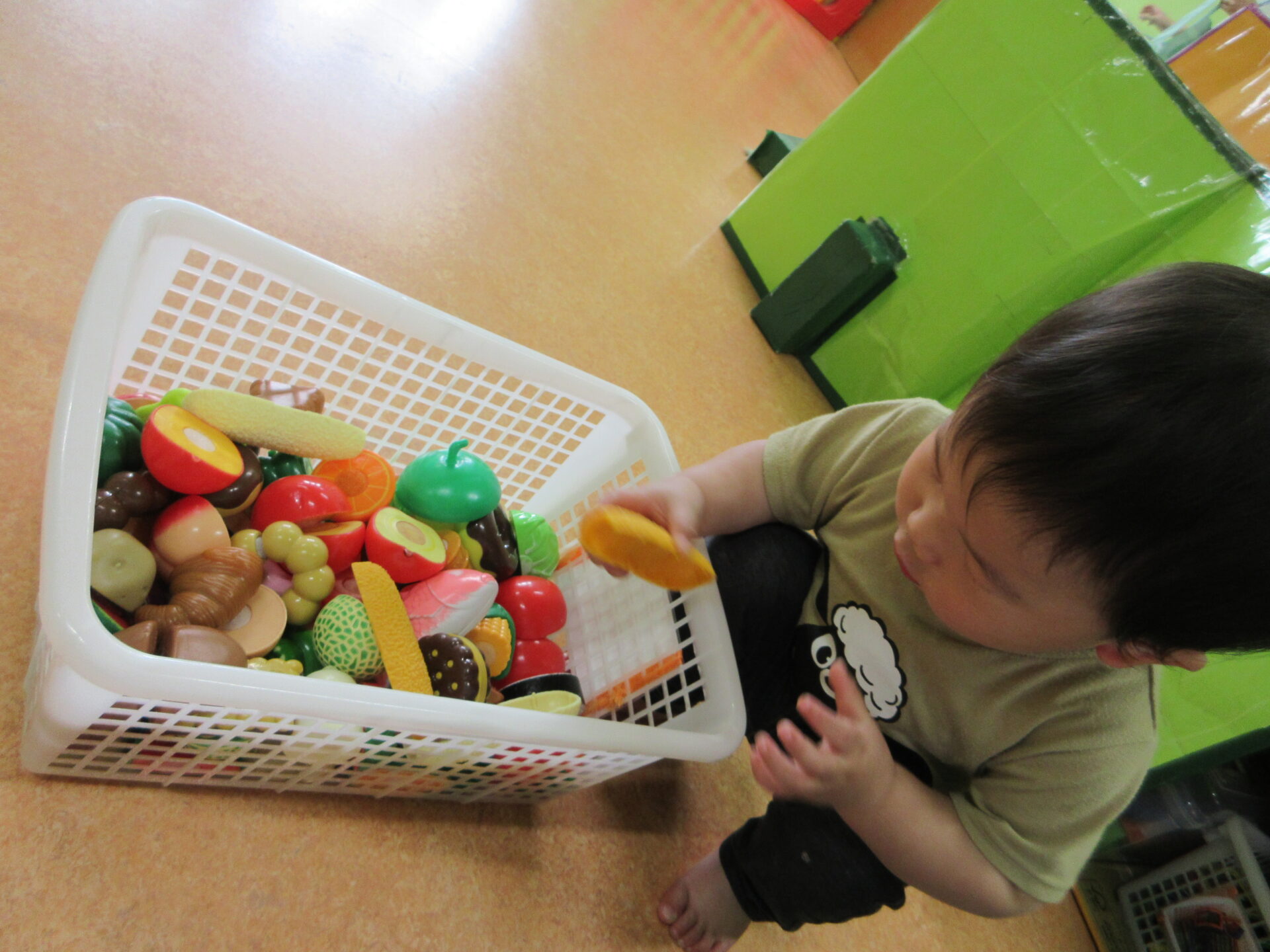保育者の電話が終わると、A君のビスケット当ても終わります。