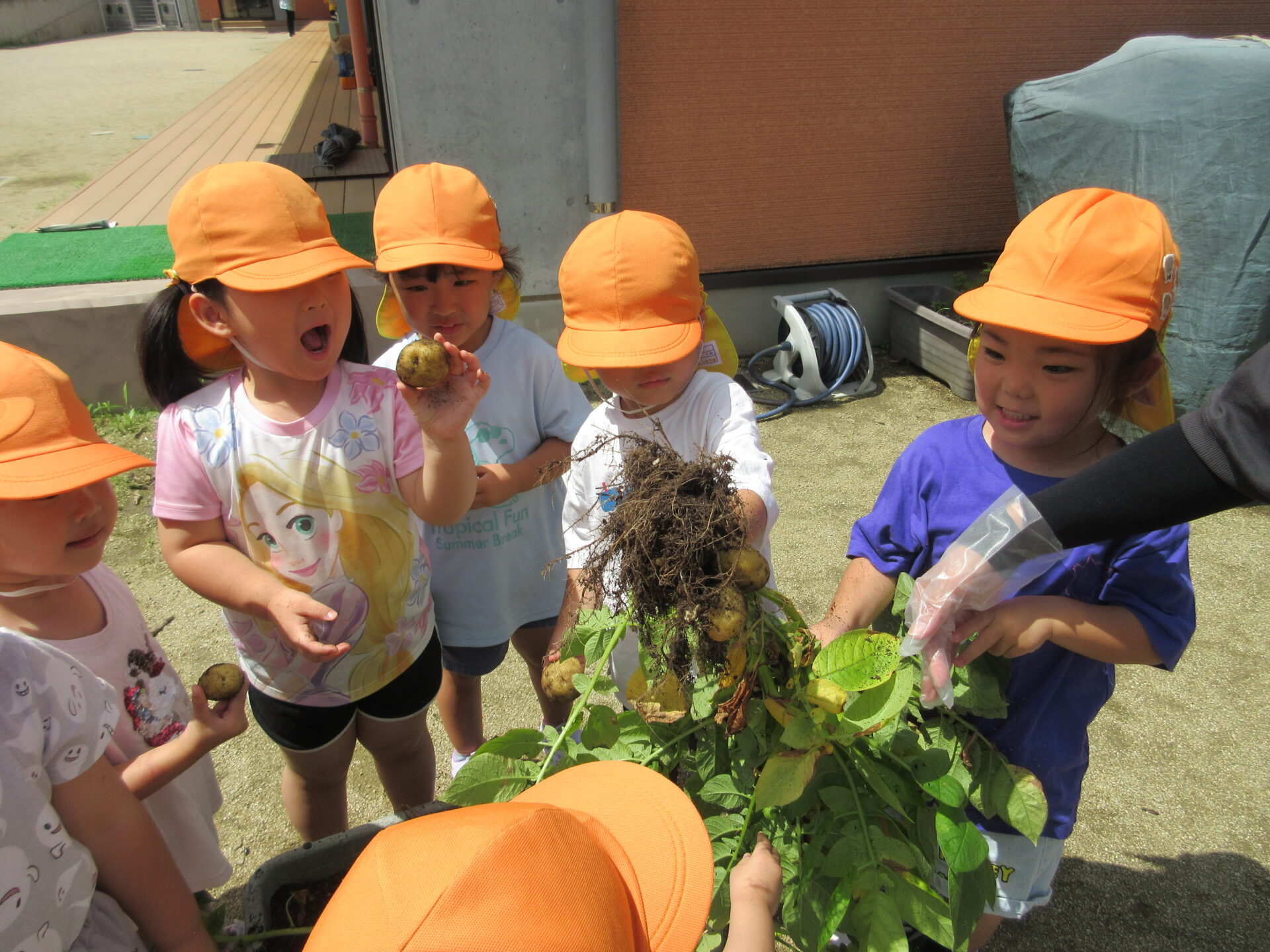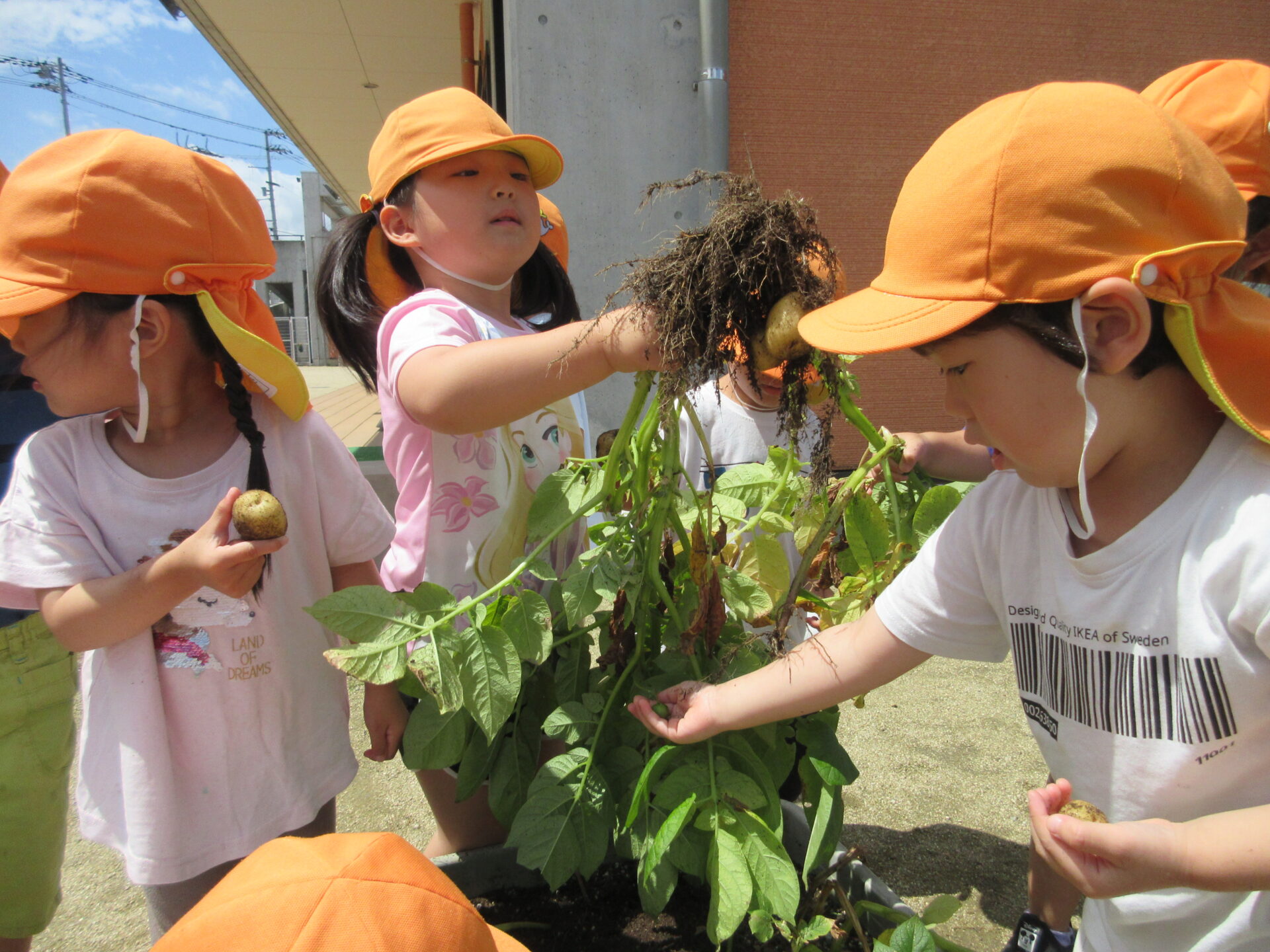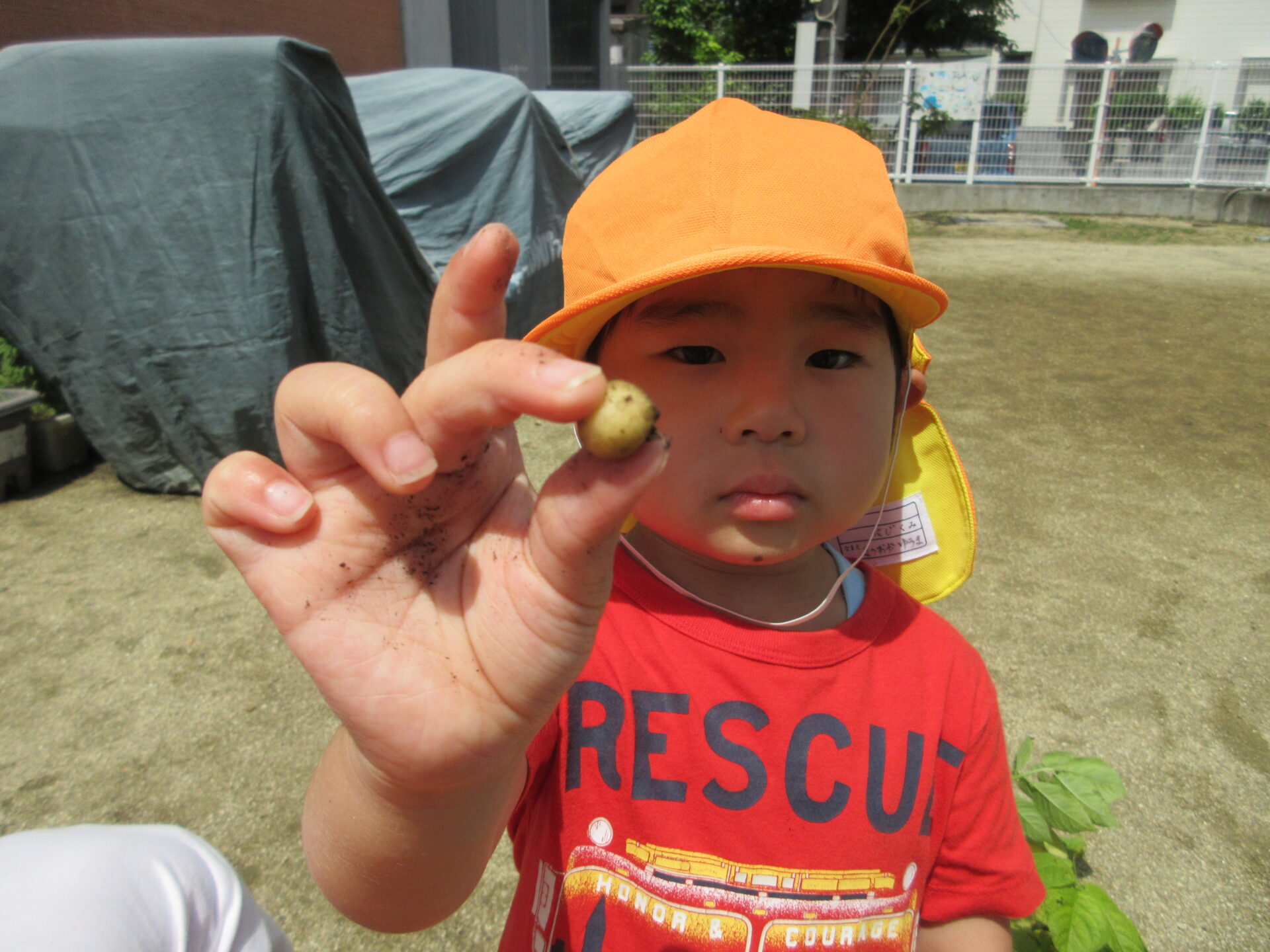 にじチーム(3歳児)が育てていた、『じゃがいも』が大きく育ち、いざ収穫!!