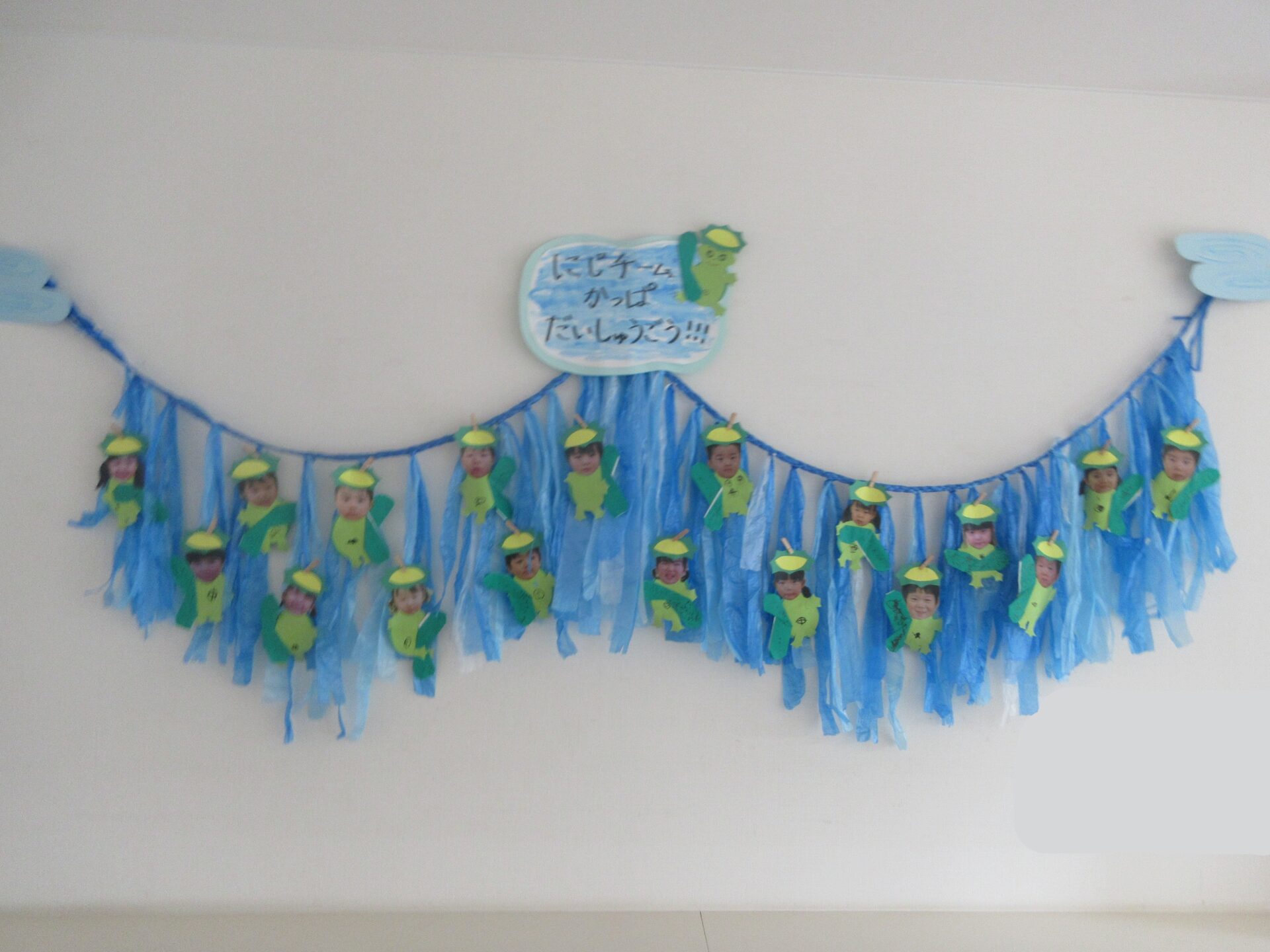 今月の玄関壁面を担当してくれたのは、にじチーム(3歳児)です😊