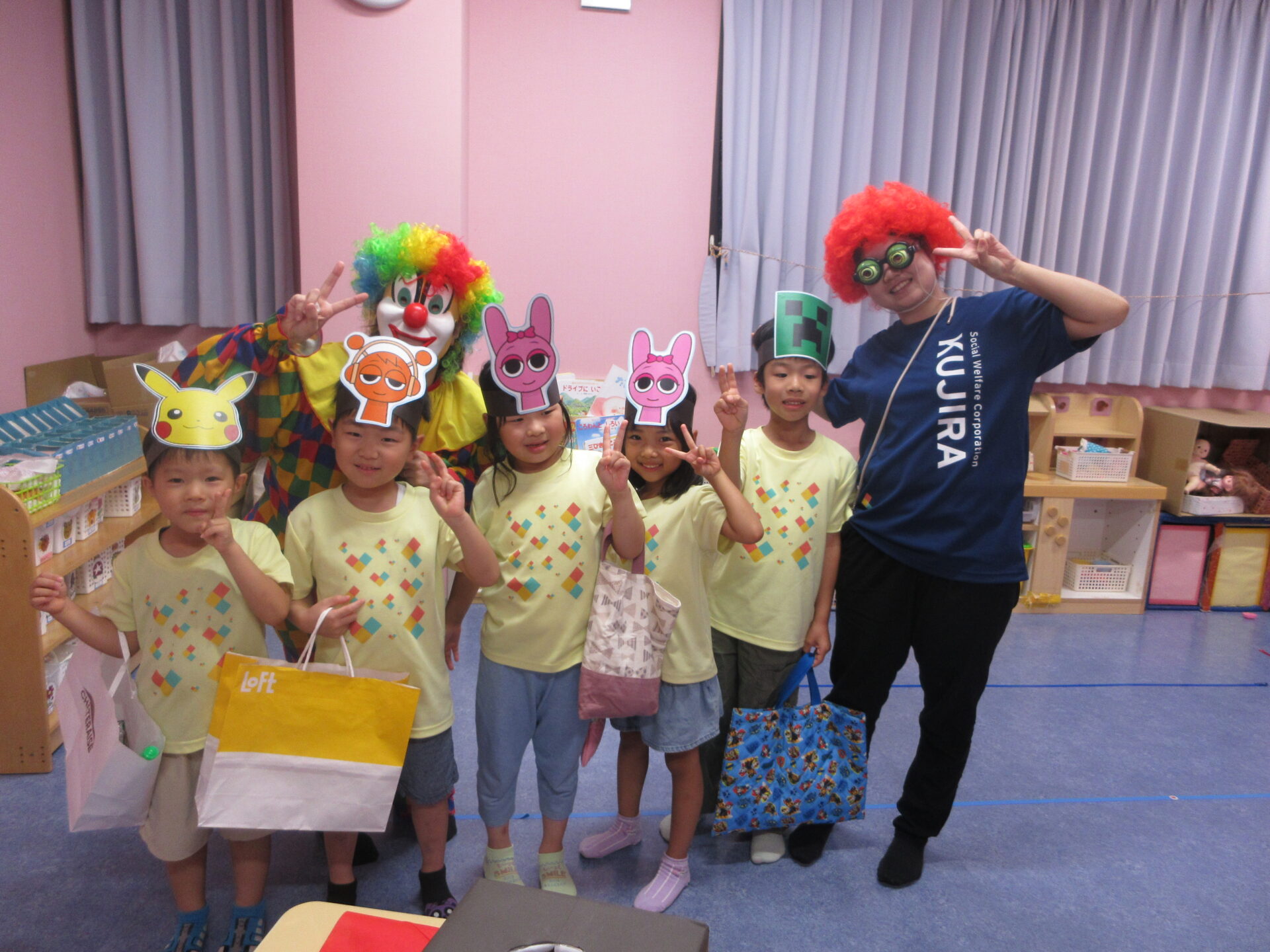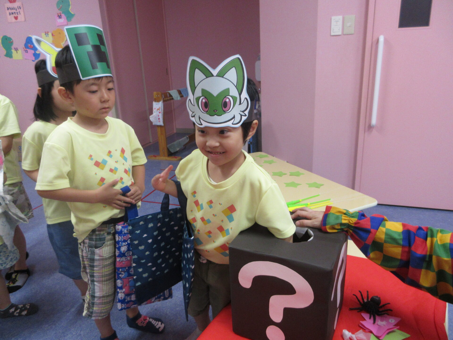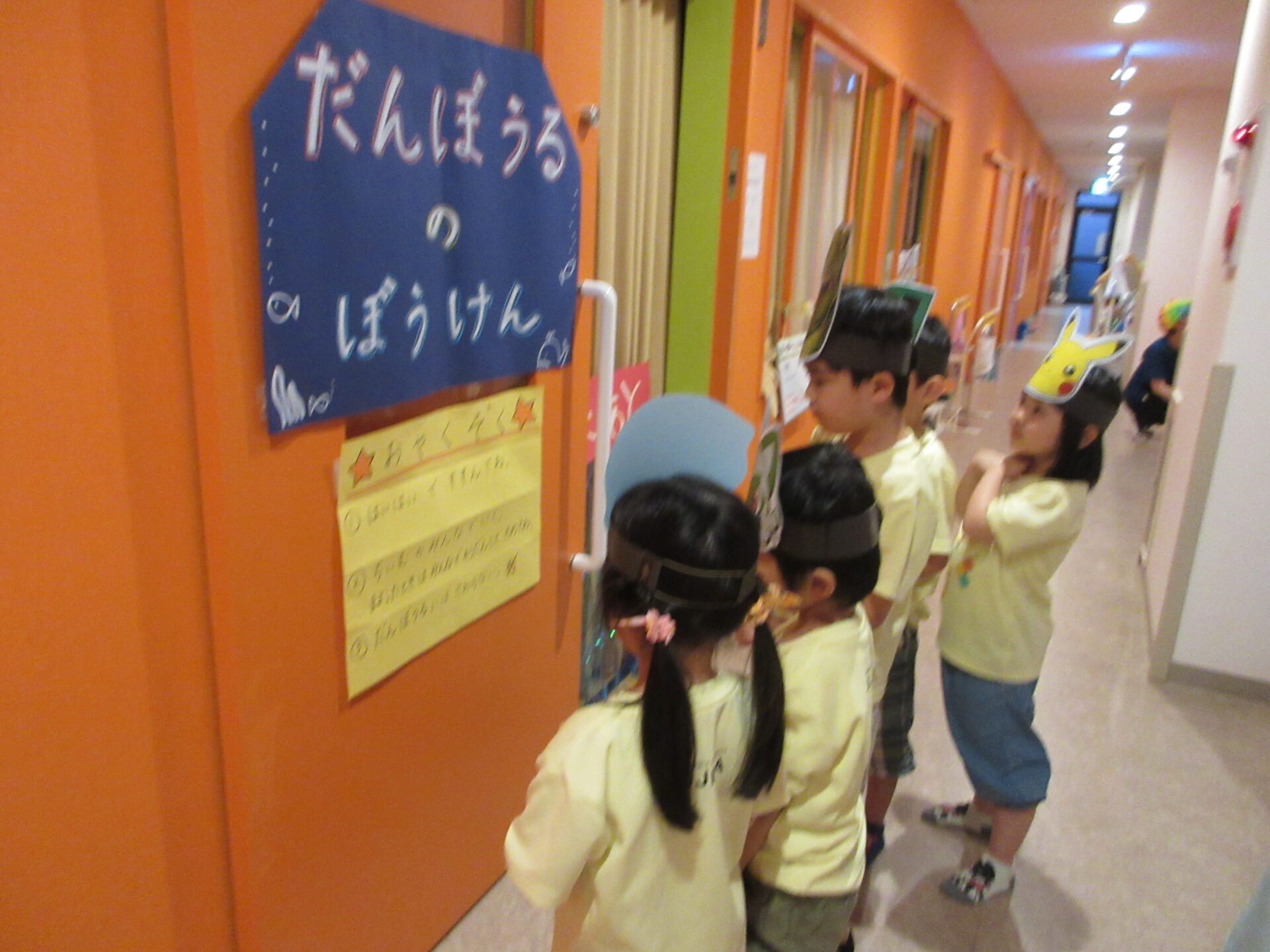 だいちチーム前の廊下で好きなキャラクターのお面を選んだり、各保育室がお楽しみのコーナーになっていたり、こどもたちはドキドキ、ワクワクです😊