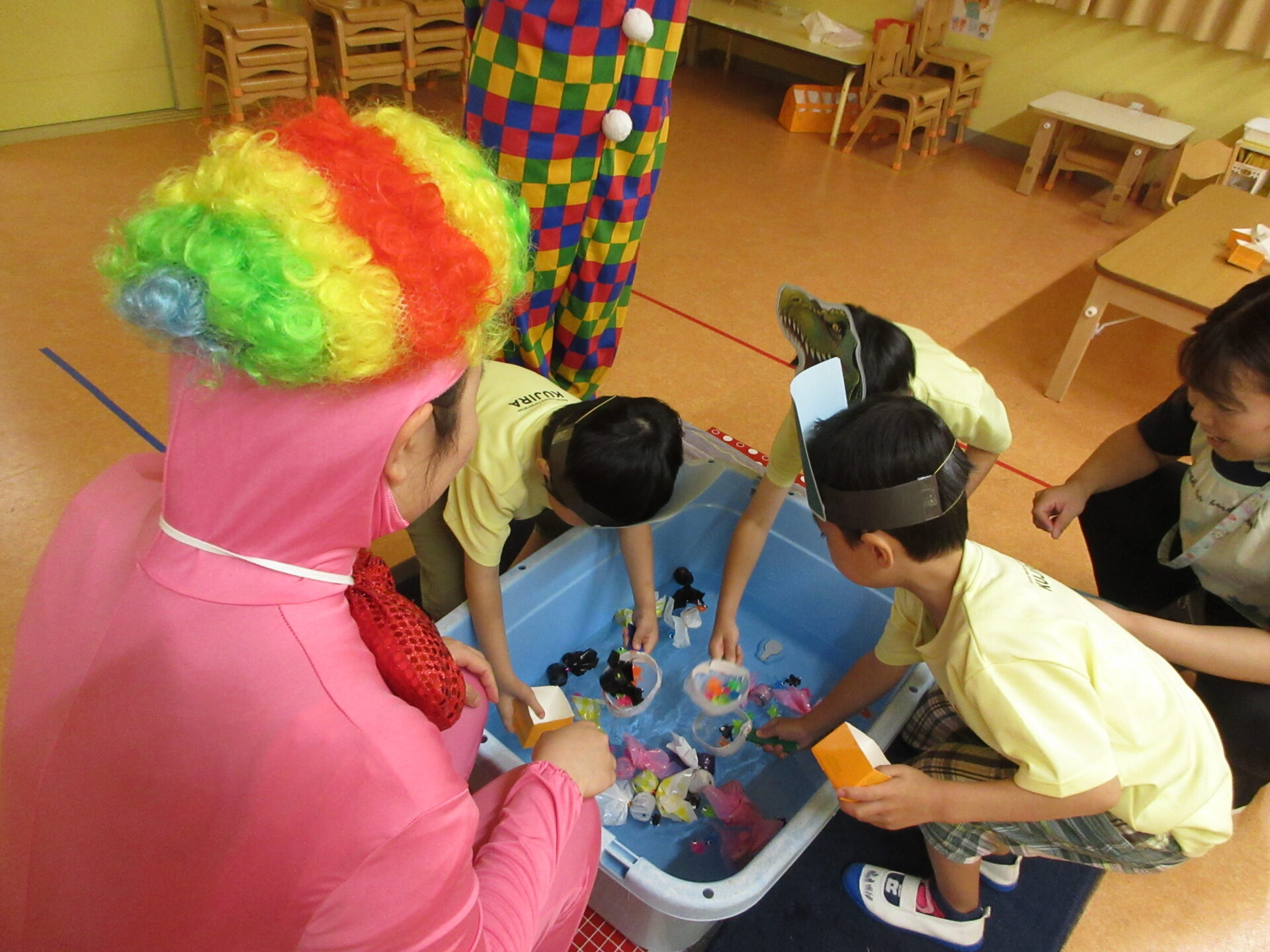 中に入ると…ピエロに変装した保育者が☺