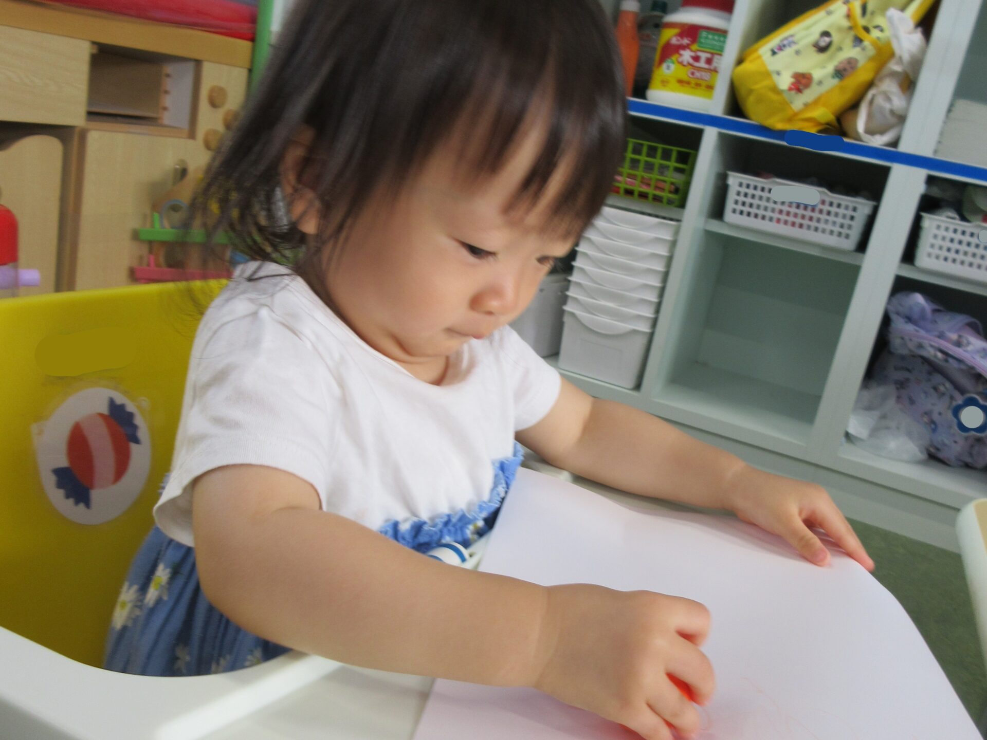画用紙いっぱいにお絵描きを楽しむ表情は、とても真剣です✨