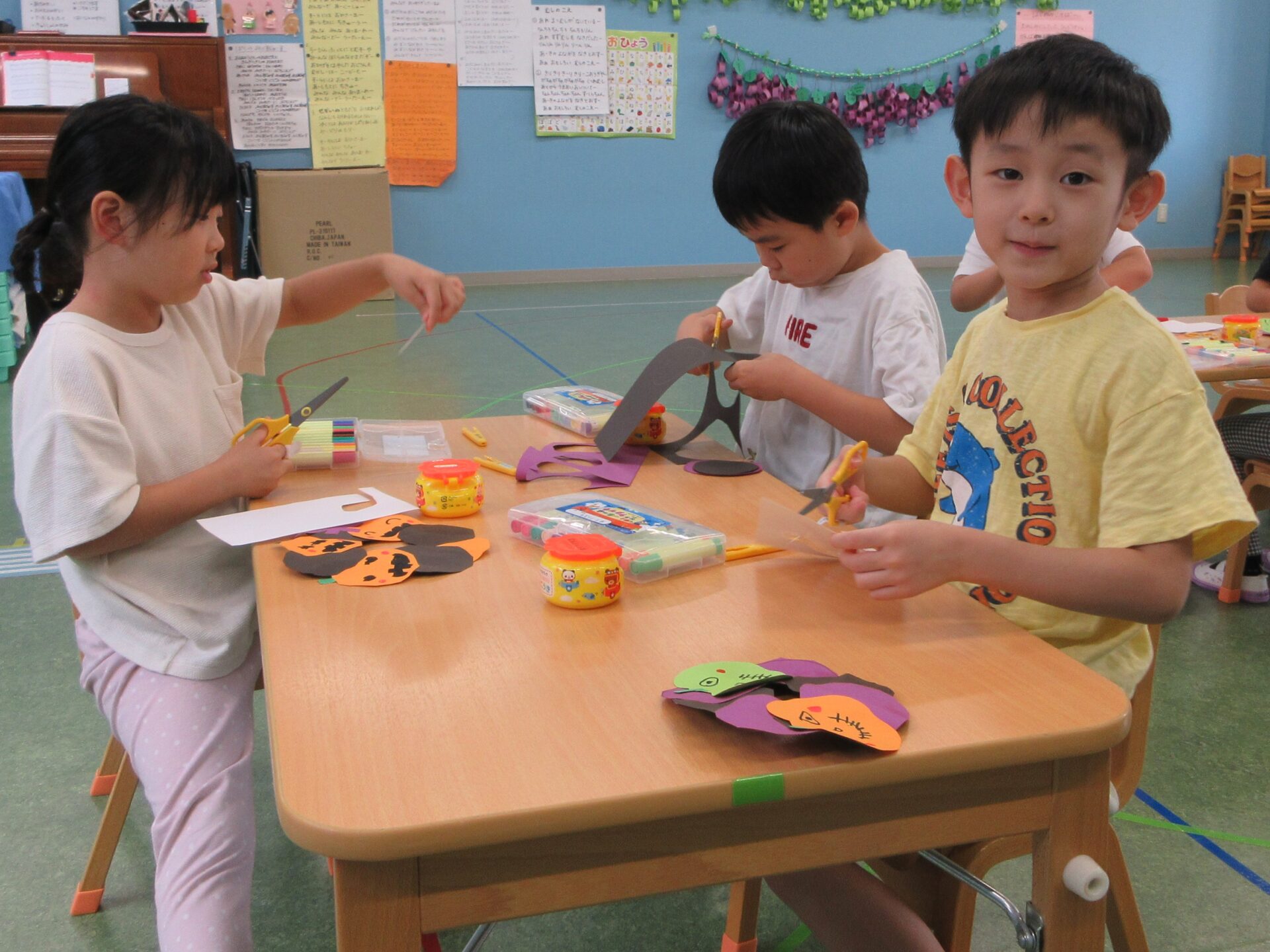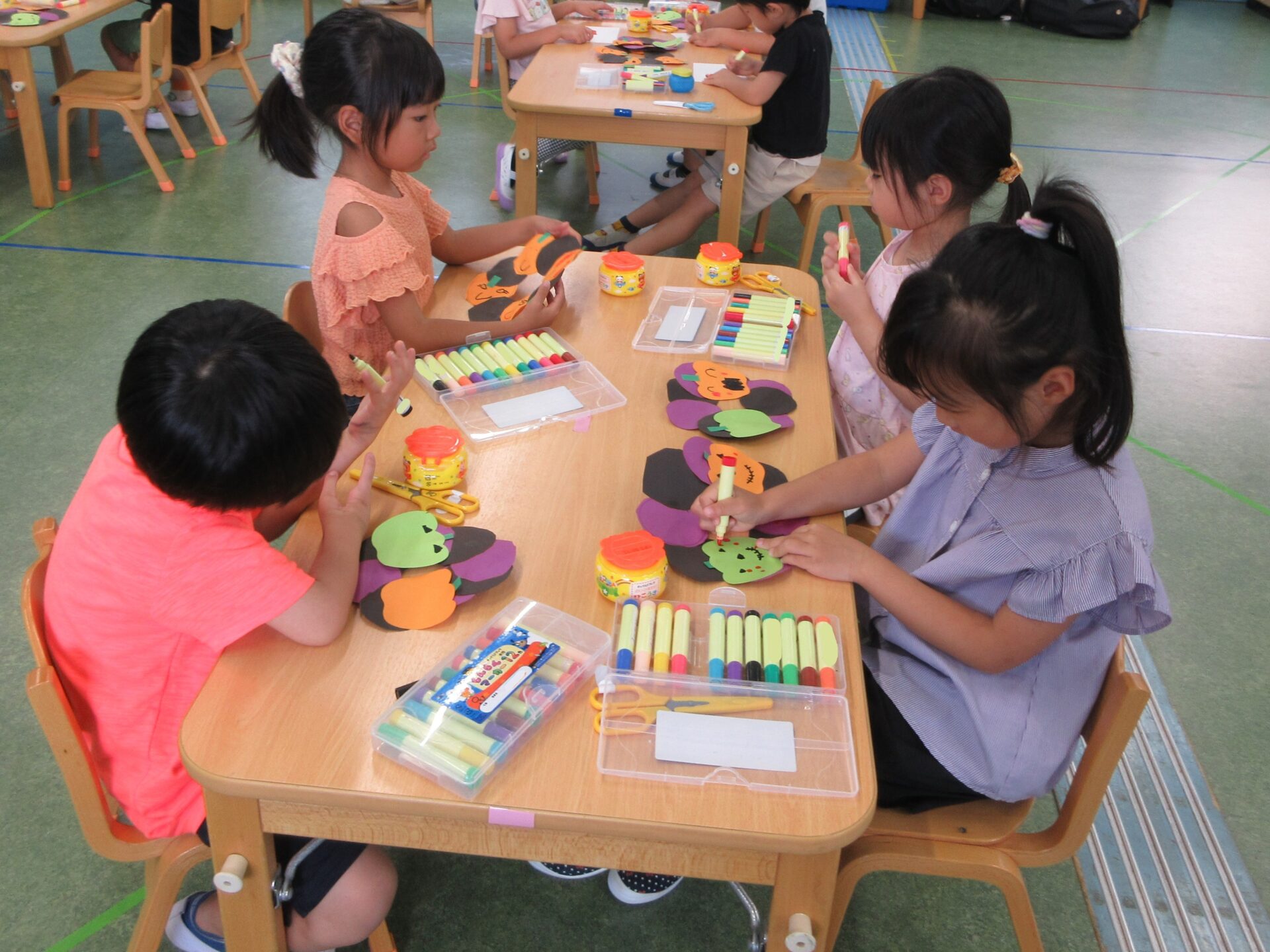 ハロウィンの製作をする、くじらチーム(5歳児)😊