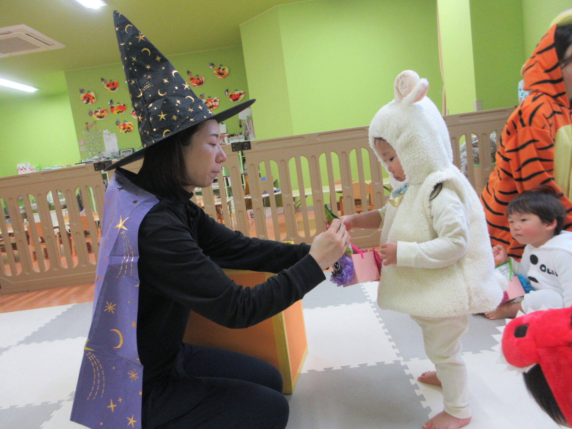 「トリック・オア・トリート!」と大きな声で言えたり、保育者と一緒に言ったりして頑張りました✨