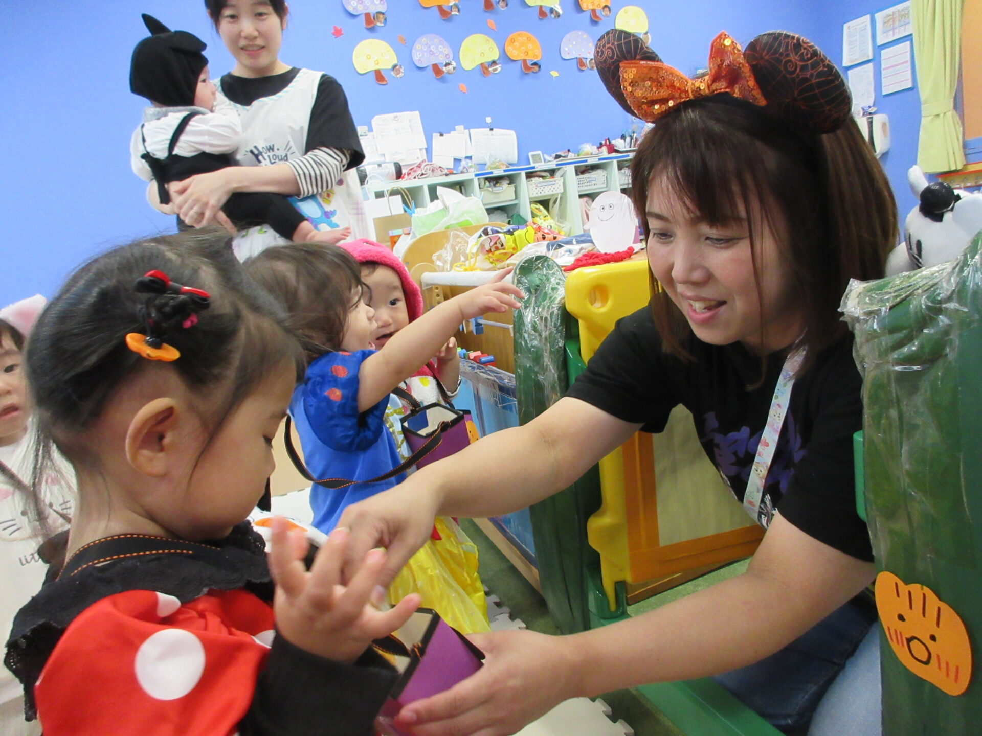 「トリック・オア・トリート!」と大きな声で言えたり、保育者と一緒に言ったりして頑張りました✨
