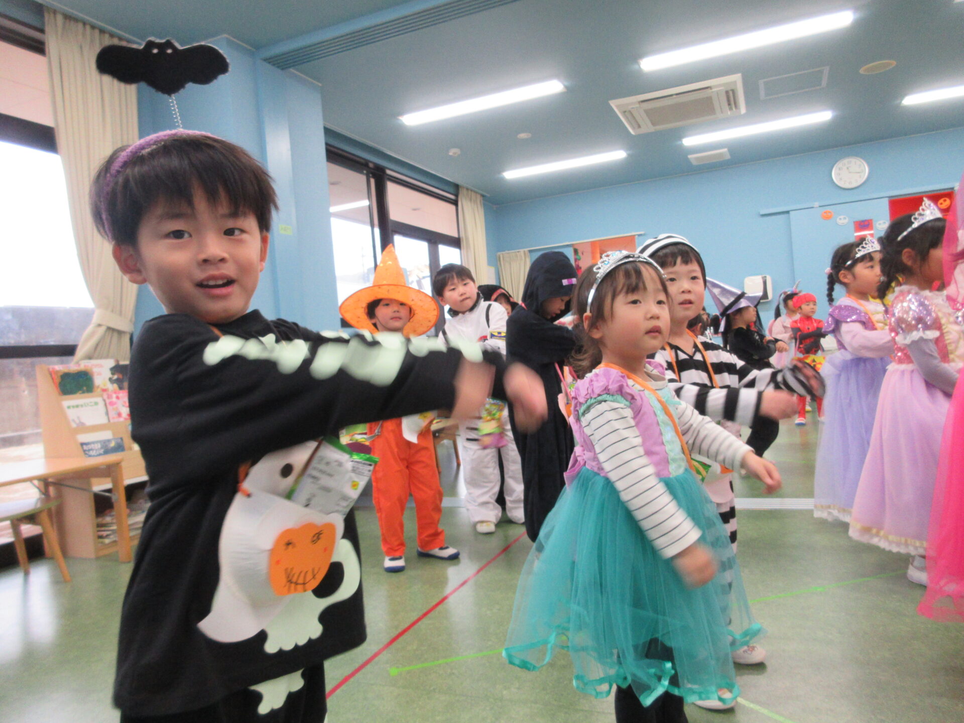 最後は、ホールで『カボチャチャランタンタン』を踊り、ハロウィンパーティーが終了となりました🎵