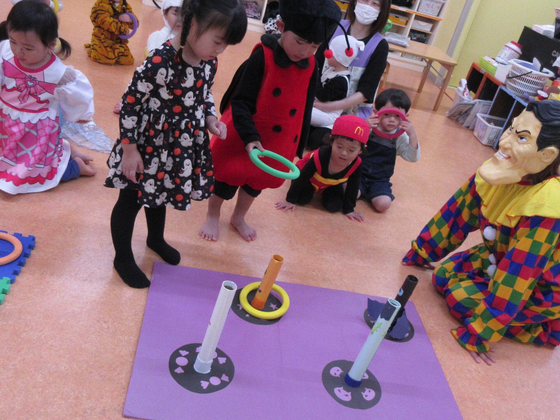2.3.4.5歳児はランウェイを歩いた後は、各保育室を回り、ゲームに挑戦しました😊