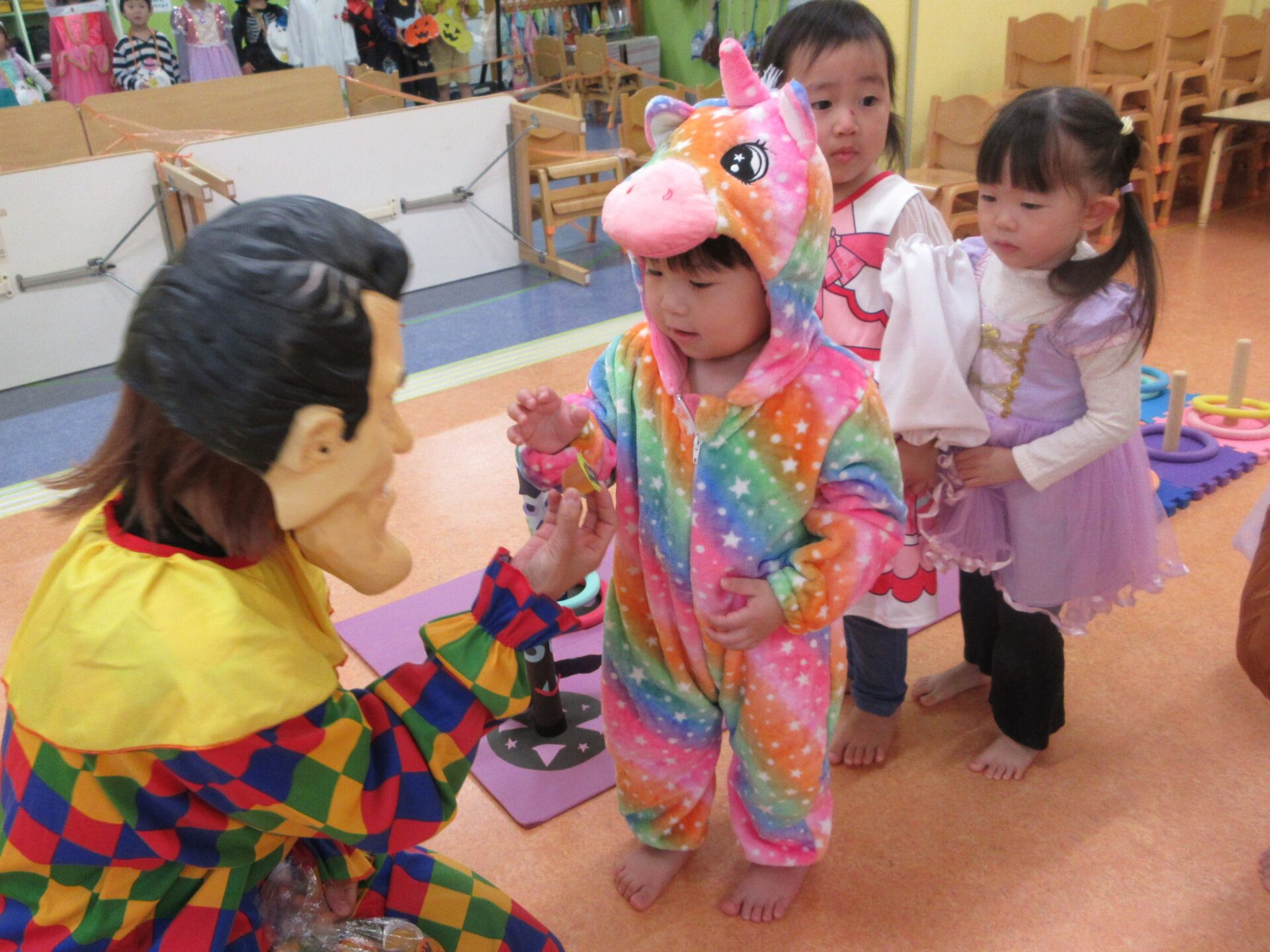 ゲームをクリアして、仮装をした保育者からお菓子をもらいましたよ🍪