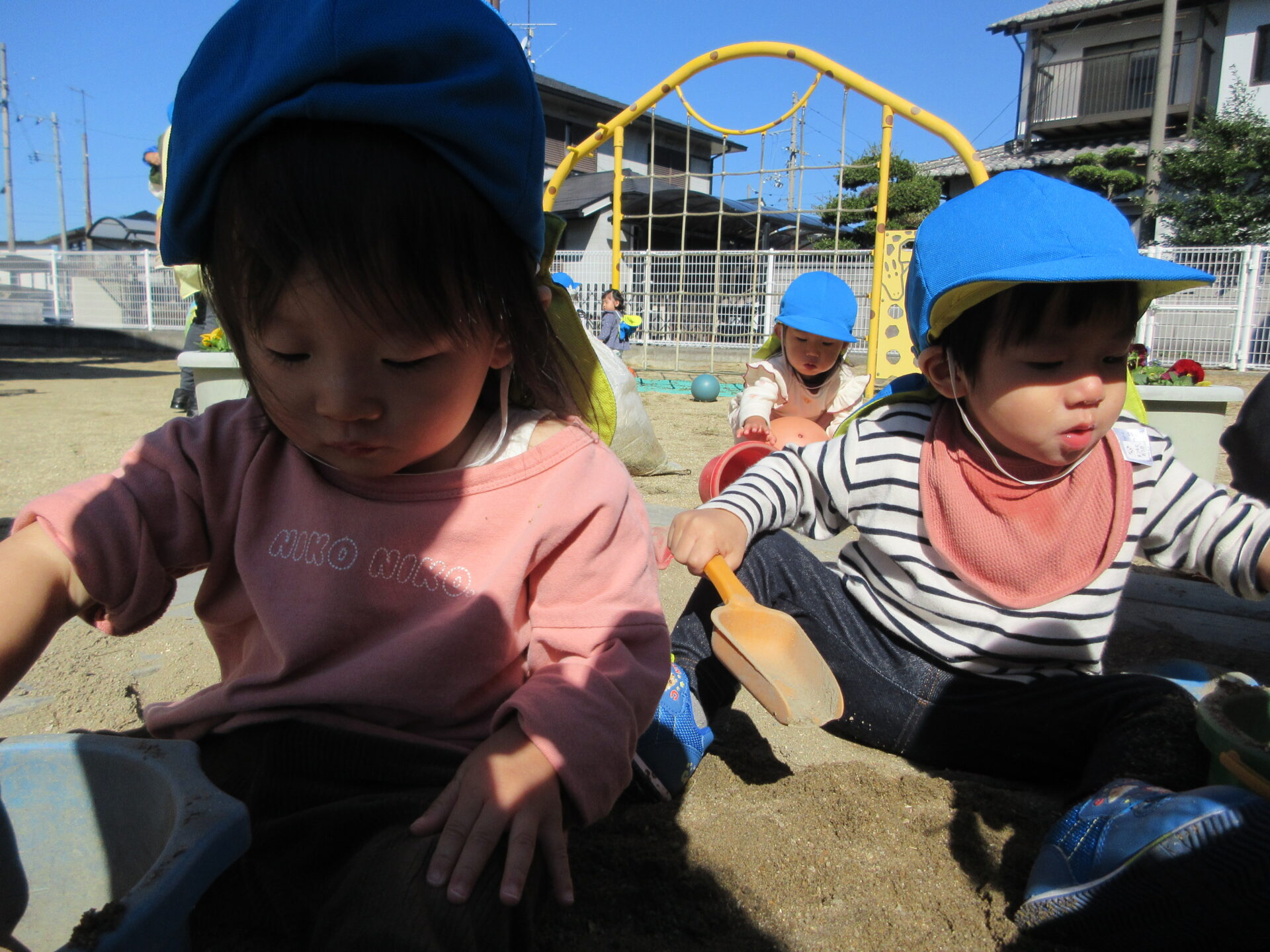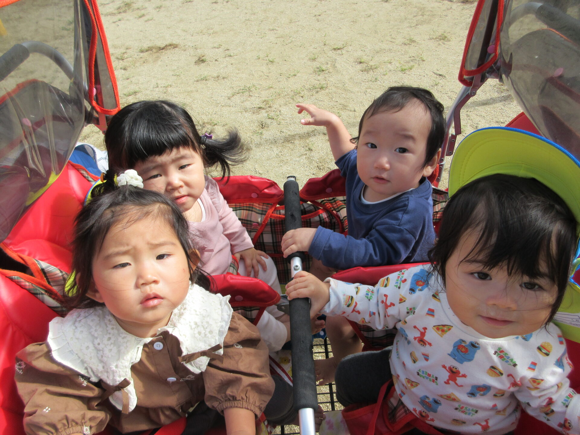 うみチーム(0歳児)は、こども園の園庭で、のびのびと遊びました😊