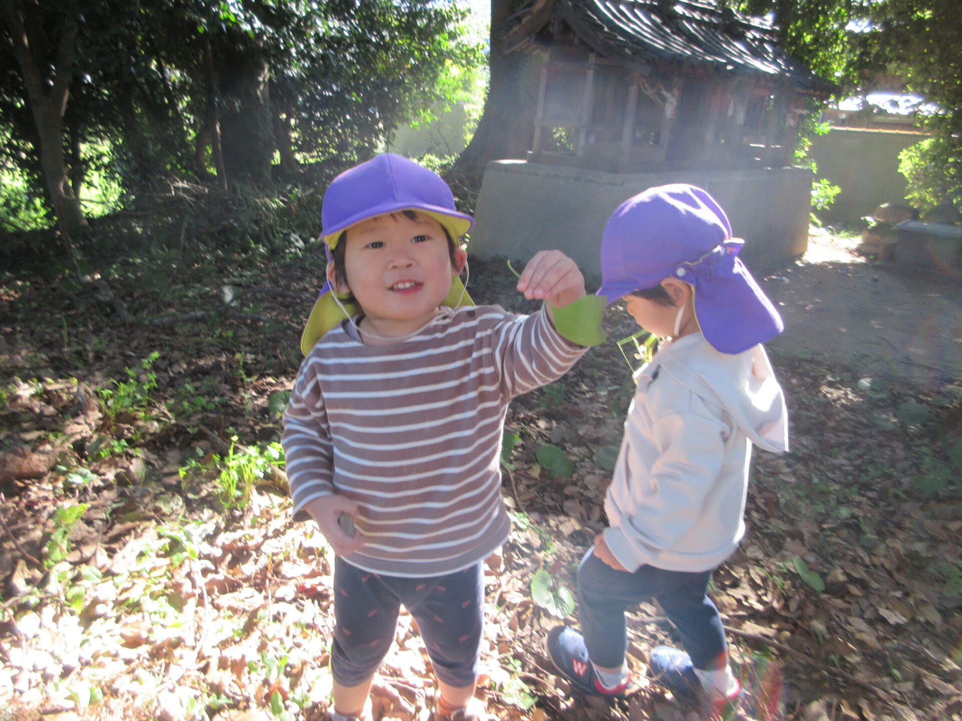 落ち葉の山を歩いて、音を楽しんだり、どんぐりや木の実を見つけたり…👀