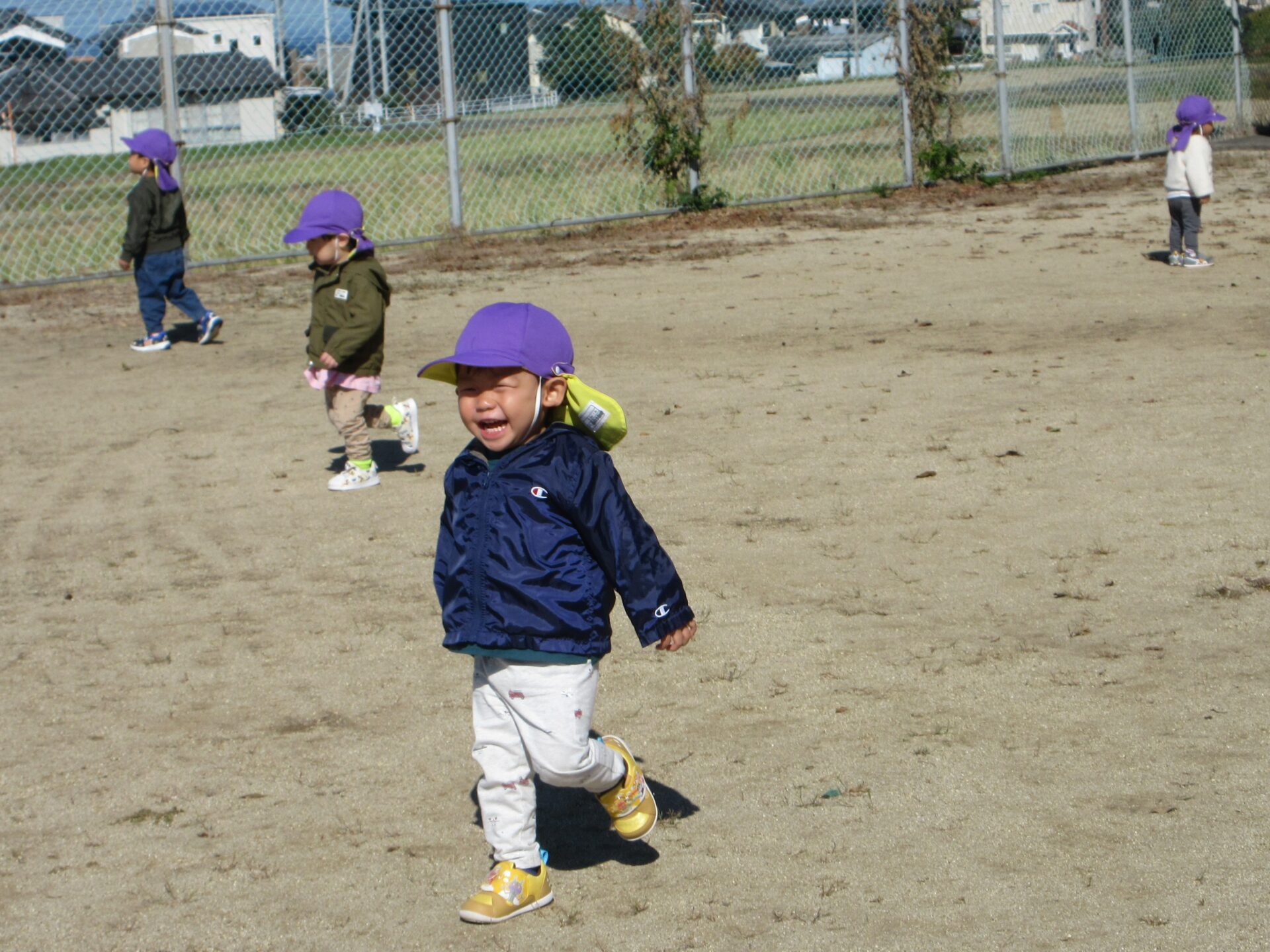 だいちチーム(1歳児)は、【稲荷東運動公園】まで、保育者と手をつないで歩いたり、散歩車に乗ったりして、秋を感じながら向かいました🎵