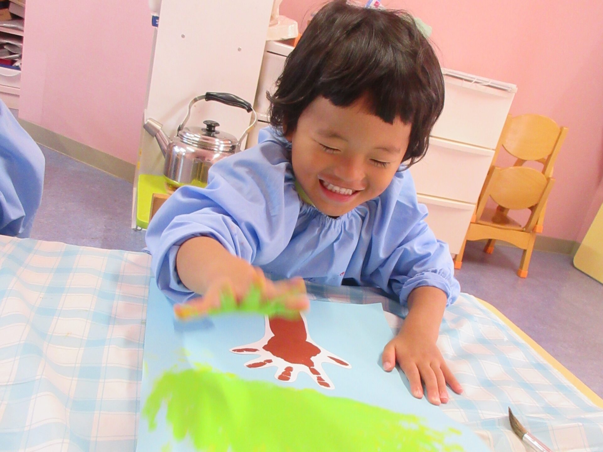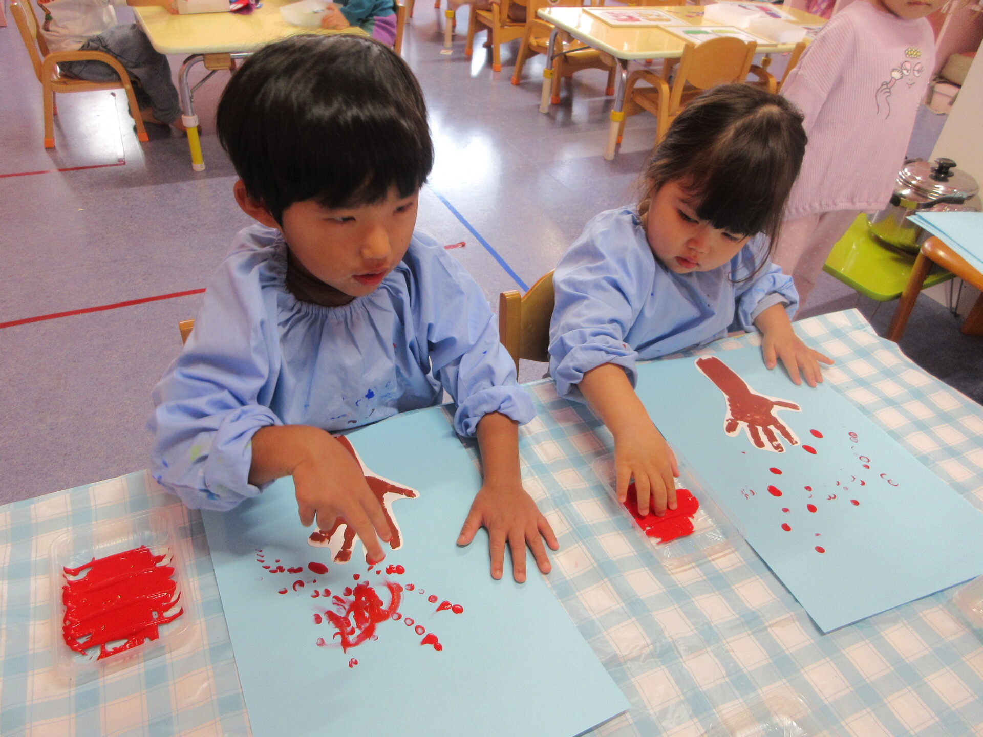 絵の具を使った製作を楽しむ、あめチーム(2歳児)!