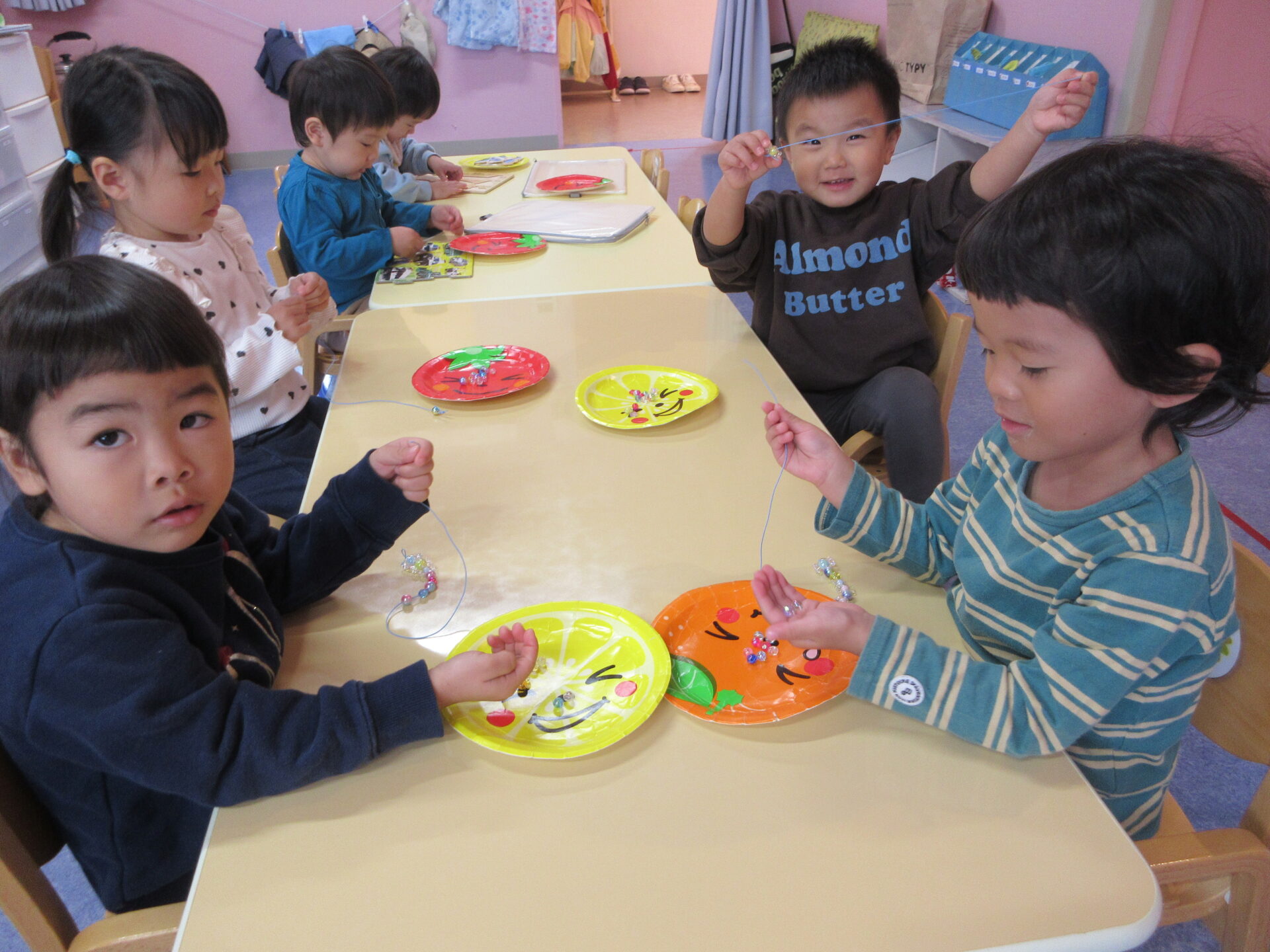 ビーズ通しに挑戦したり…