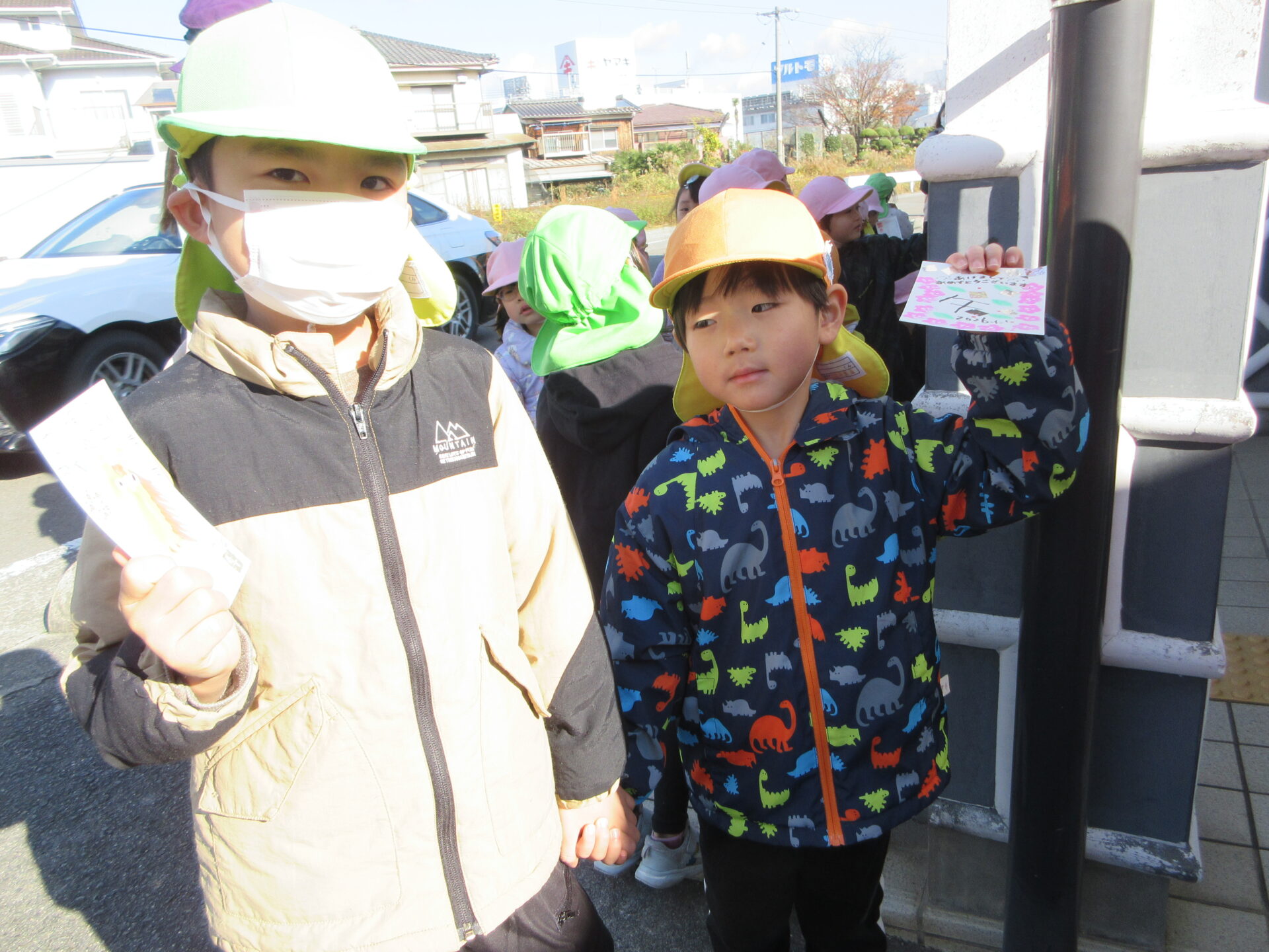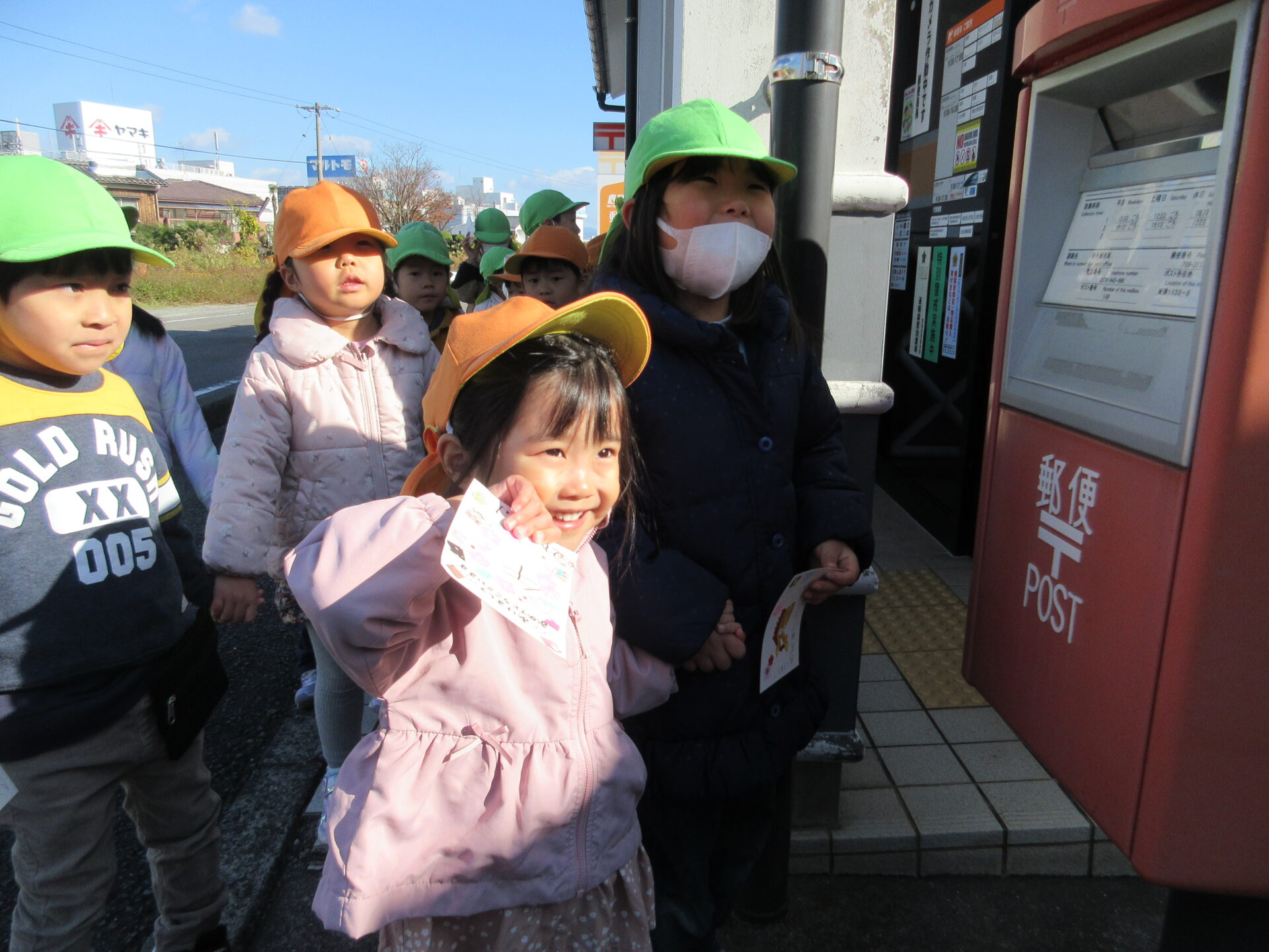 自分たちで書いたり、スタンプしたりして作った年賀状を出しに郵便局まで行きました✨