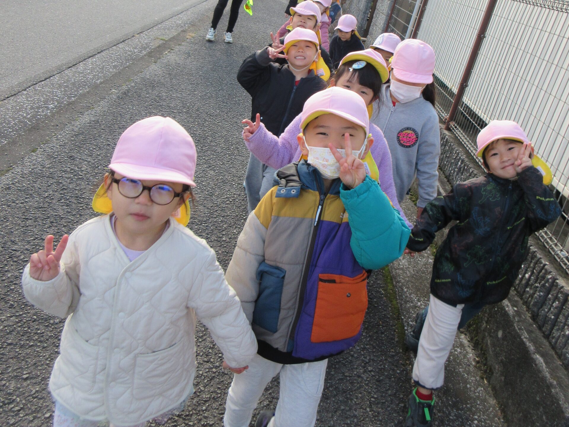 園庭から「いってきまーす!」と元気な声が聞こえ、3.4.5歳児で園外へ😊