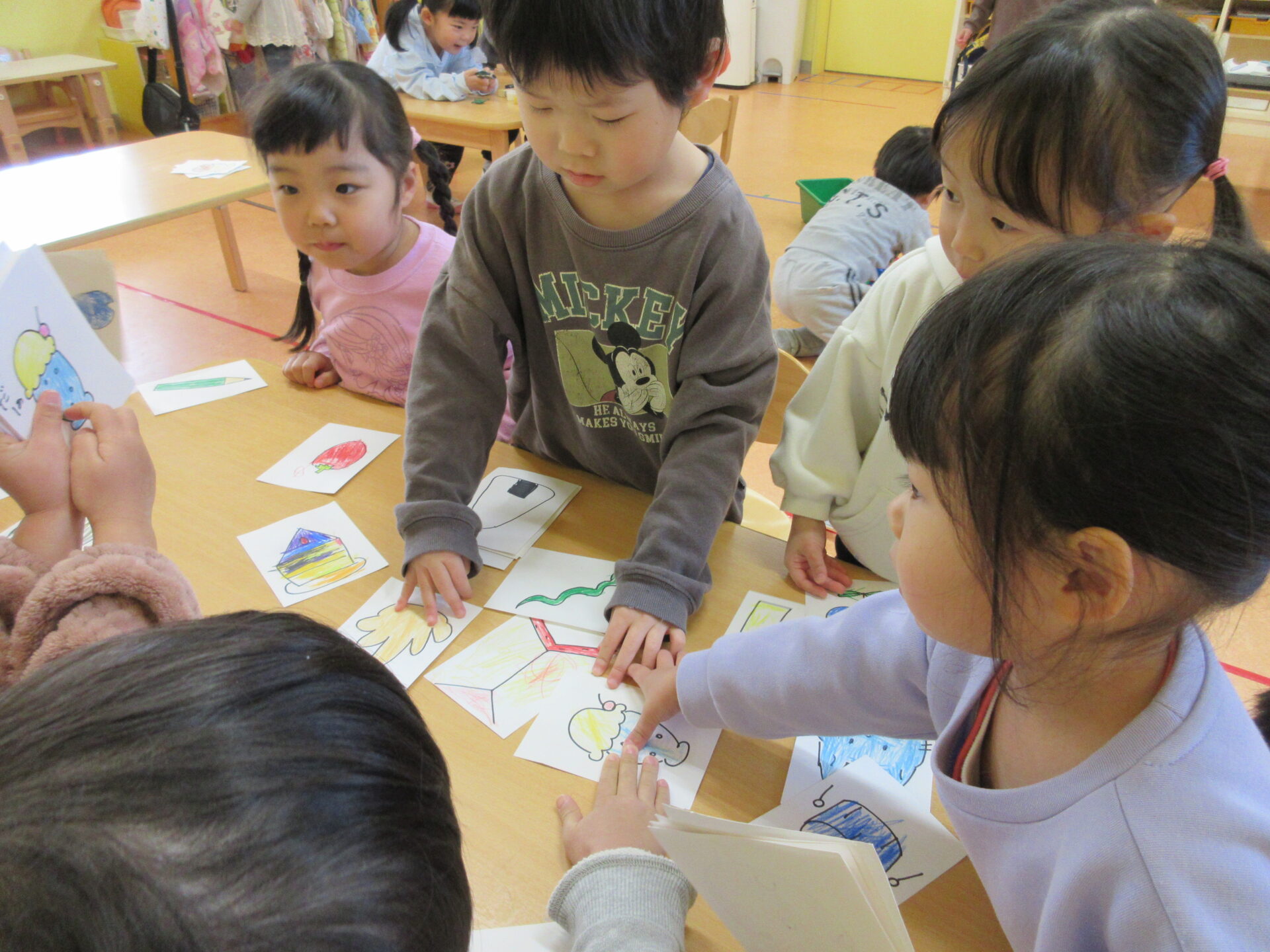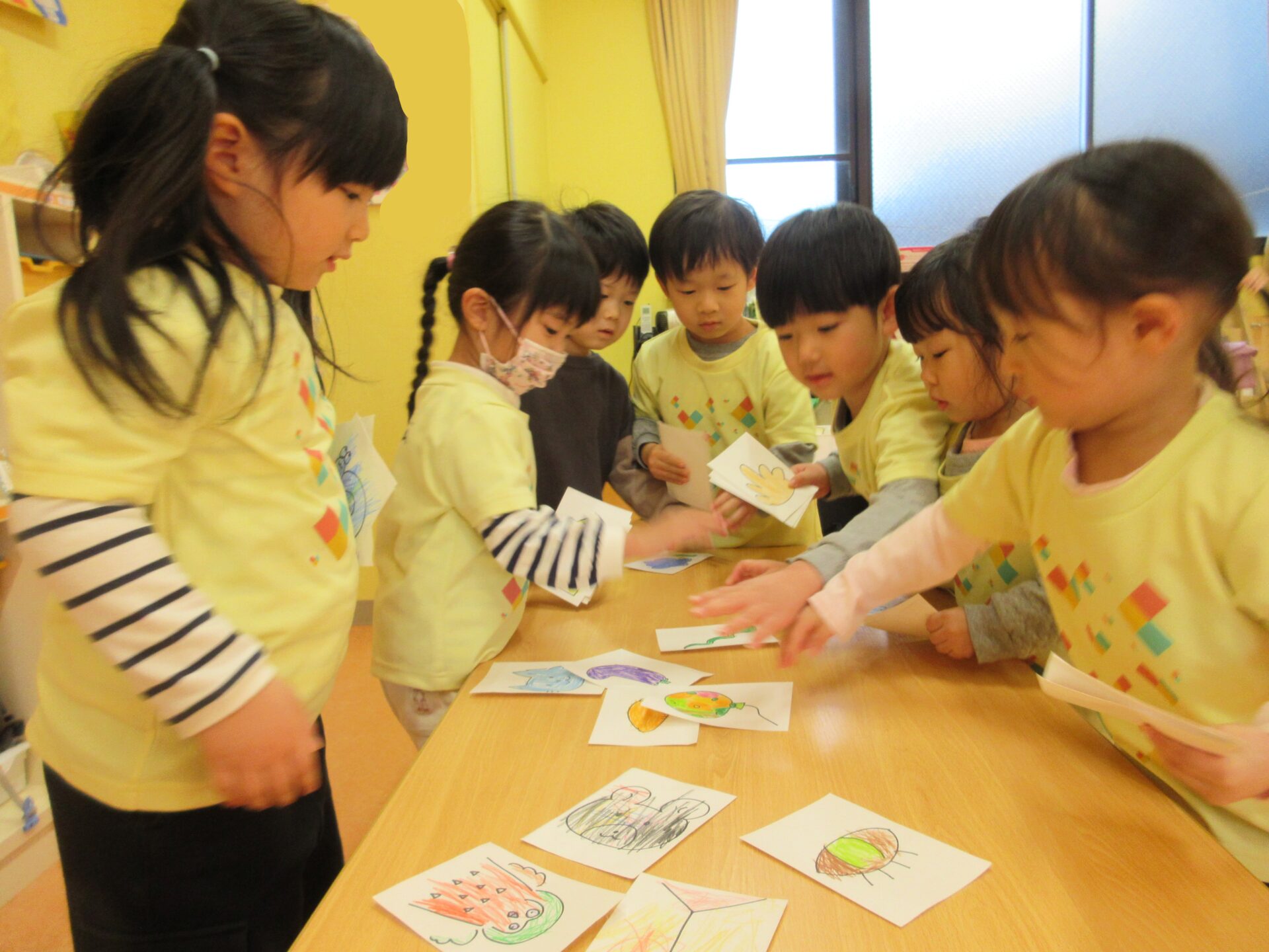 2026.01.15 ブログ どこかな~?🍓(3歳児) とても真剣な表情をしているにじチーム(3歳児)! 色塗りをして手作りした絵合わせを楽しんでいます😊 「これと同じのどーこだ!」 「どこかな~?」と探し、「あった!!!」と真剣勝負していましたよ✨ 一覧へ戻る