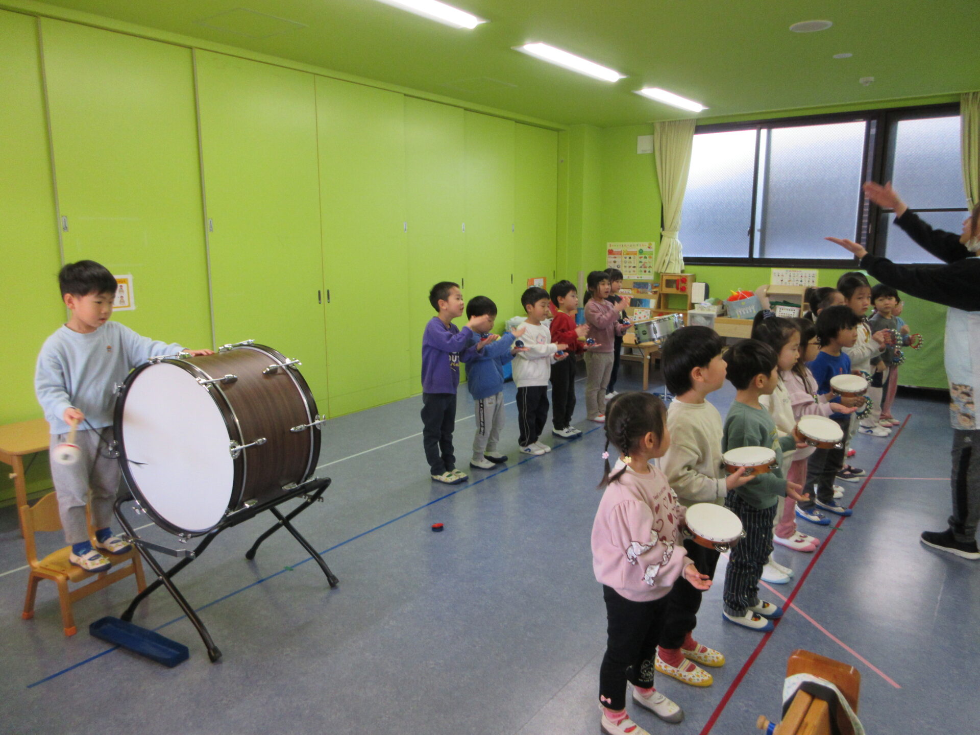2026.02.04 ブログ がんばっています✨(4歳児) 今回は、そらチーム(4歳児)の『合奏』の様子を紹介します😊 保育者の指揮に合わせて、楽器を鳴らし、とても真剣に頑張っています🌟 楽しみながら練習に取り組んでいますよ🎵 一覧へ戻る