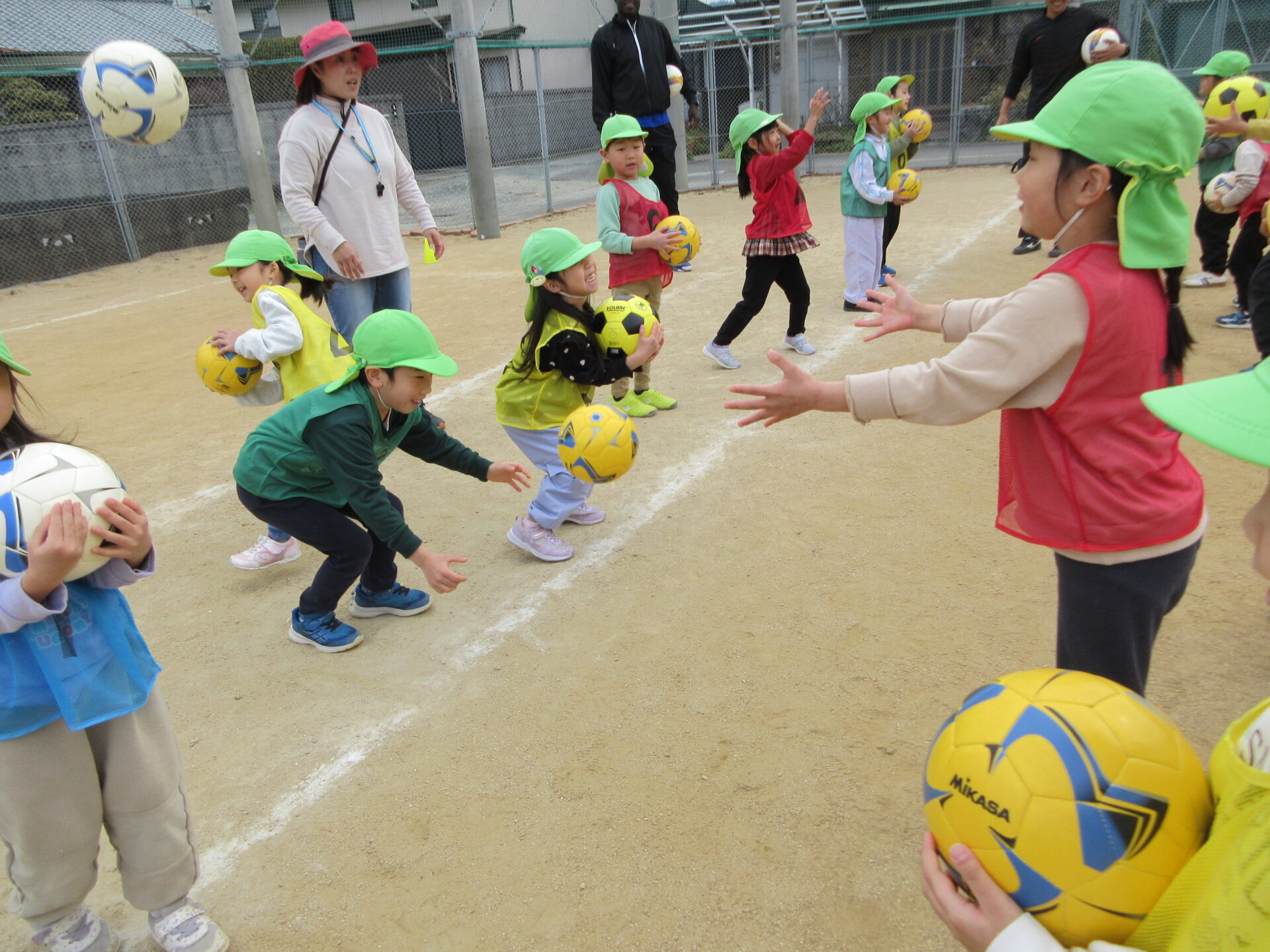 次は、お友だちとボールを投げたり、蹴ったりしてパスの練習に挑戦✨