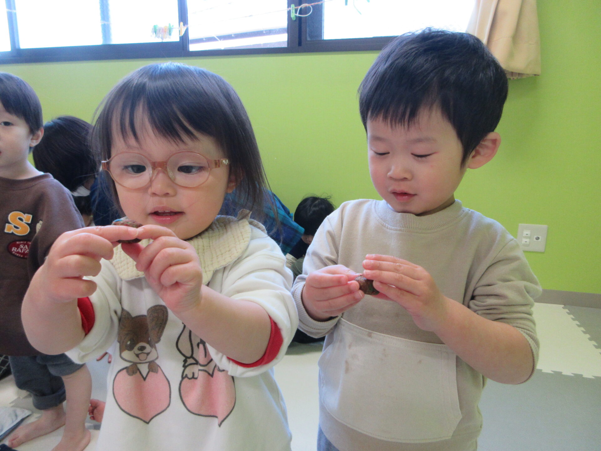 最後は、ぎゅっと固めて感触遊びを楽しみました💖