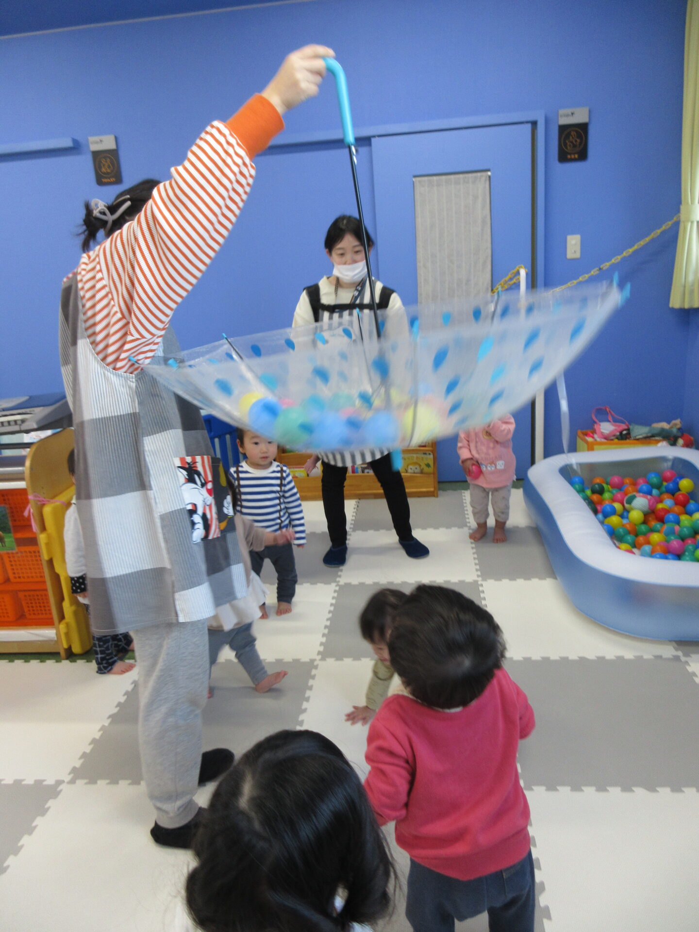 室内にボールプールのある、うみチーム(0歳児)😊