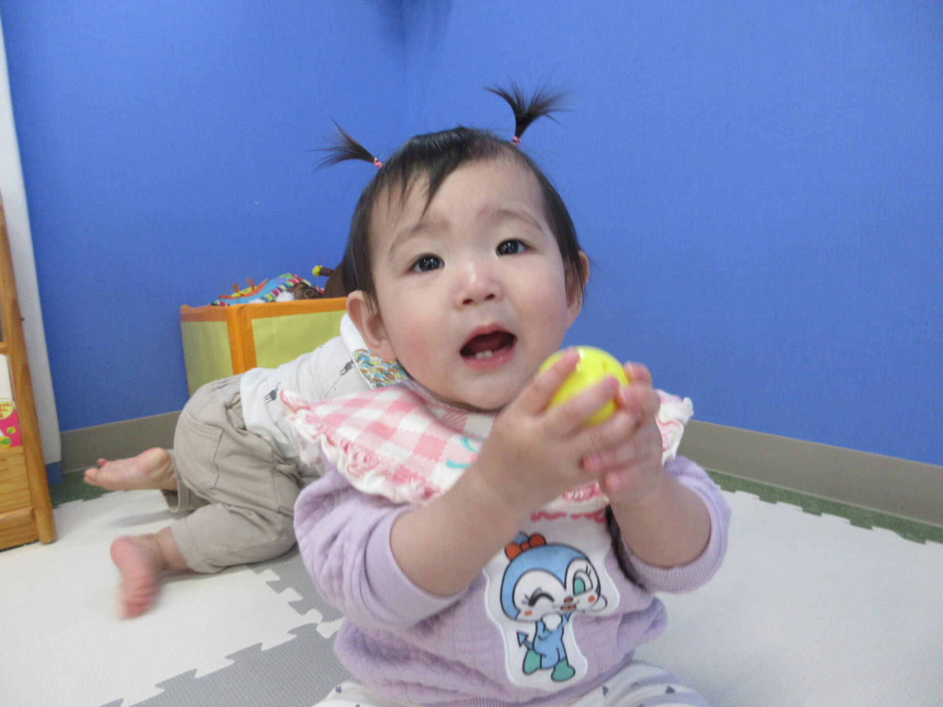 はじめは、おうちの人と離れる際に涙する姿も見られましたが、1時間、2時間と少しずつの保育の中で、様々なおもちゃに興味をもち、手に取って遊ぶ様子も見られています。
