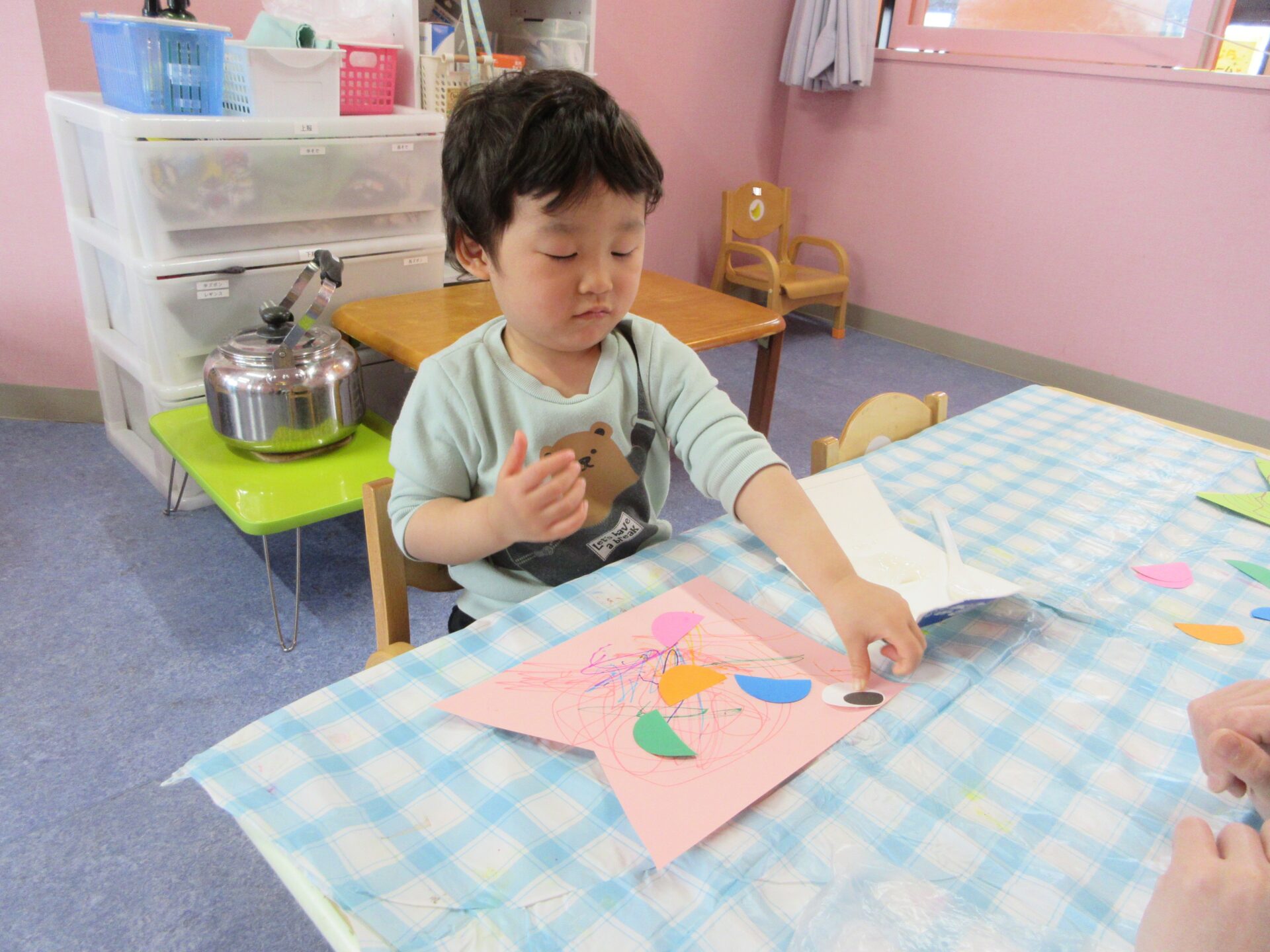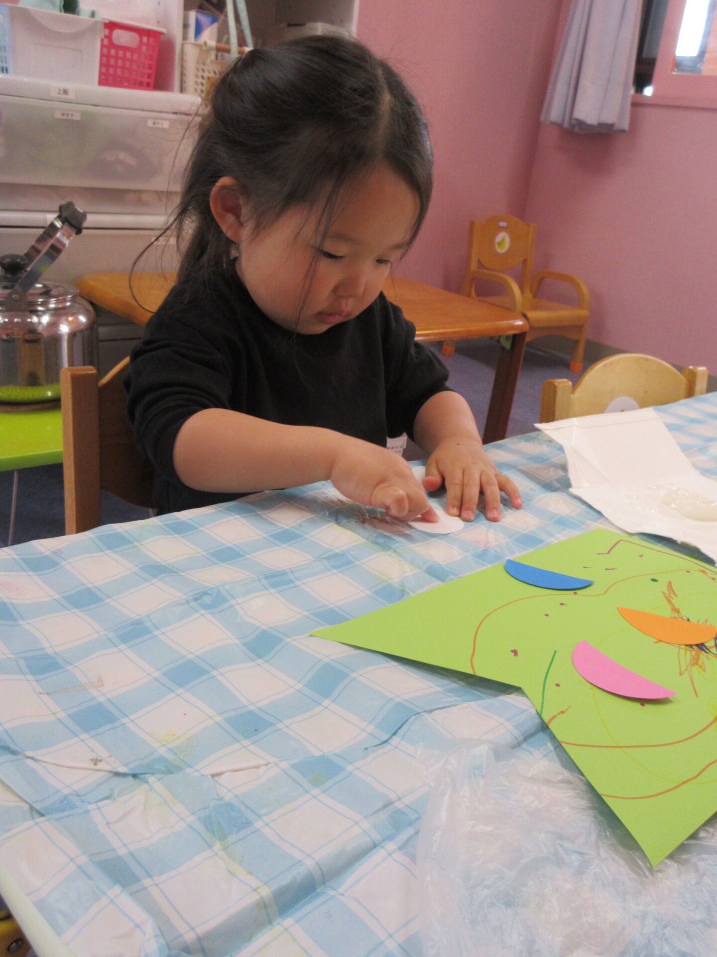 5月の製作に取りかかる2歳児あめチームさん。